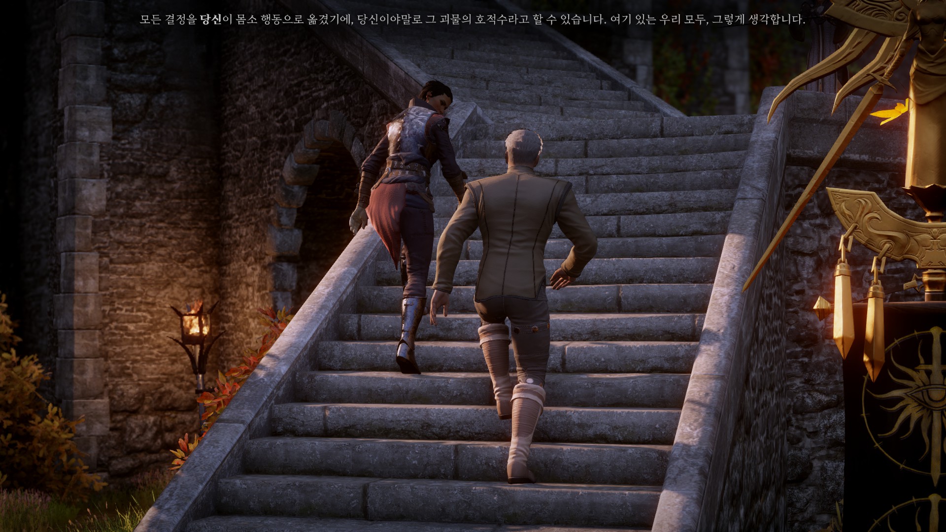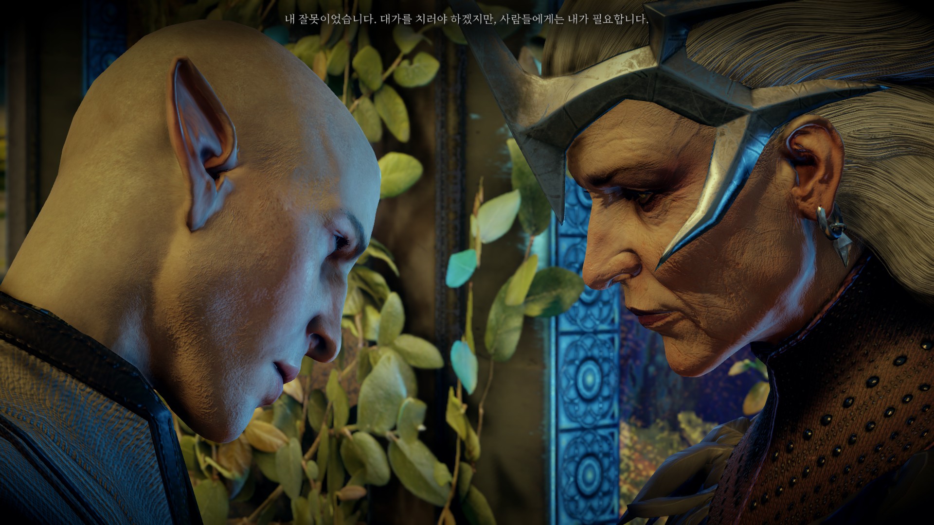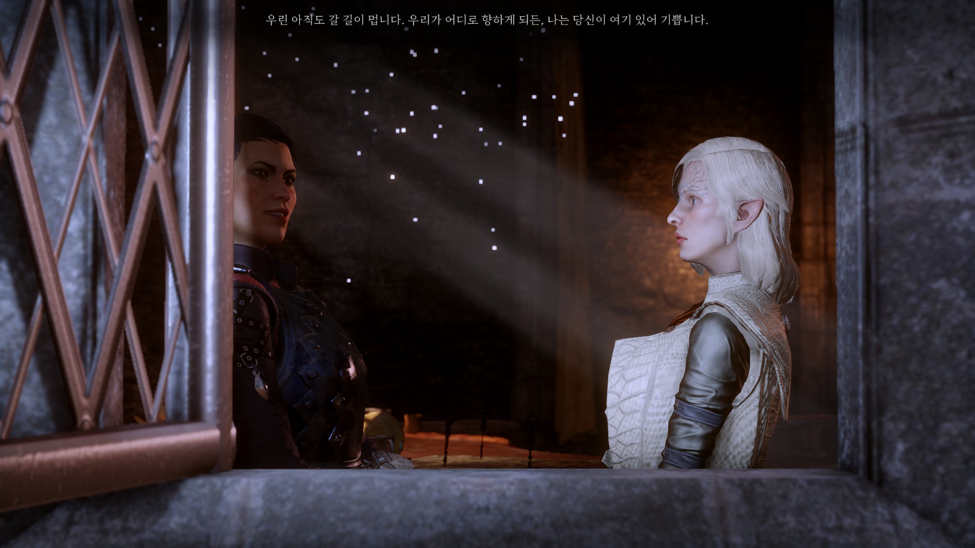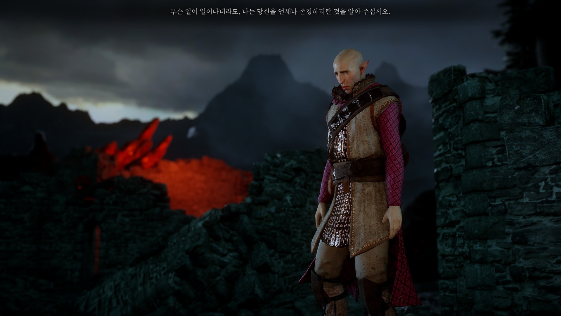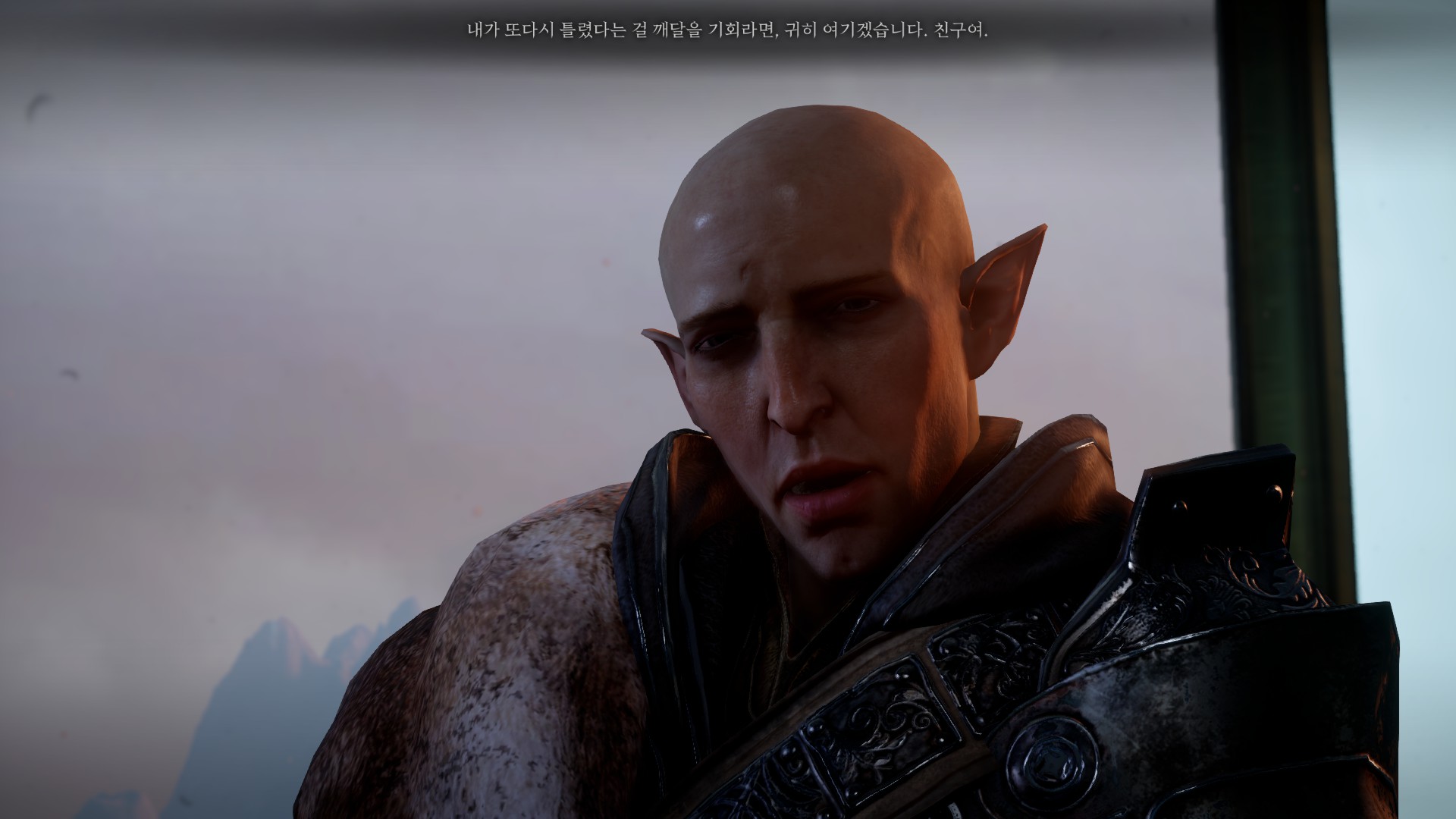이런 말을 해줘서 더 특별한 일을 해낸 것 같은 기분이 들었다. 게임 내에서 솔라스의 위치와 인퀴지션 전체 스토리를 생각하면 엘프가 심문관인게 제일 자연스러운 것 같기도 하고.