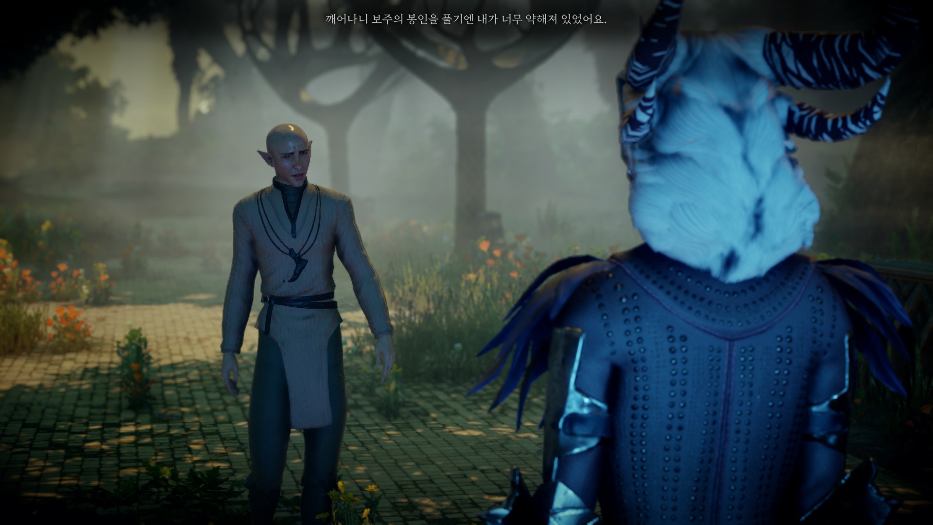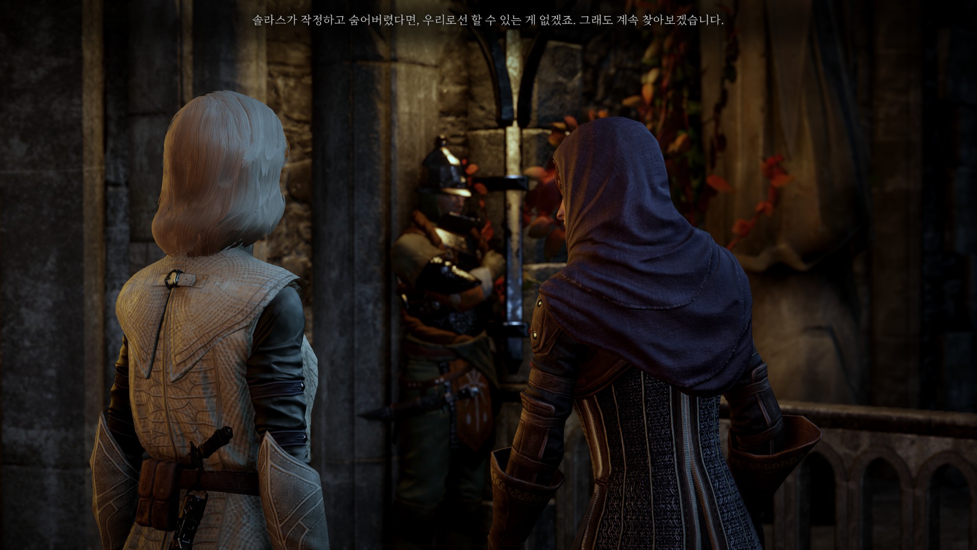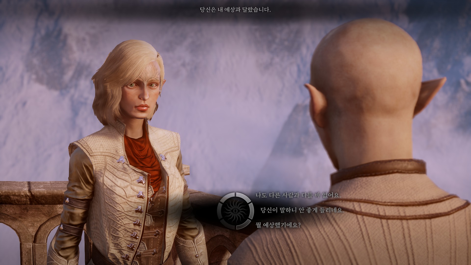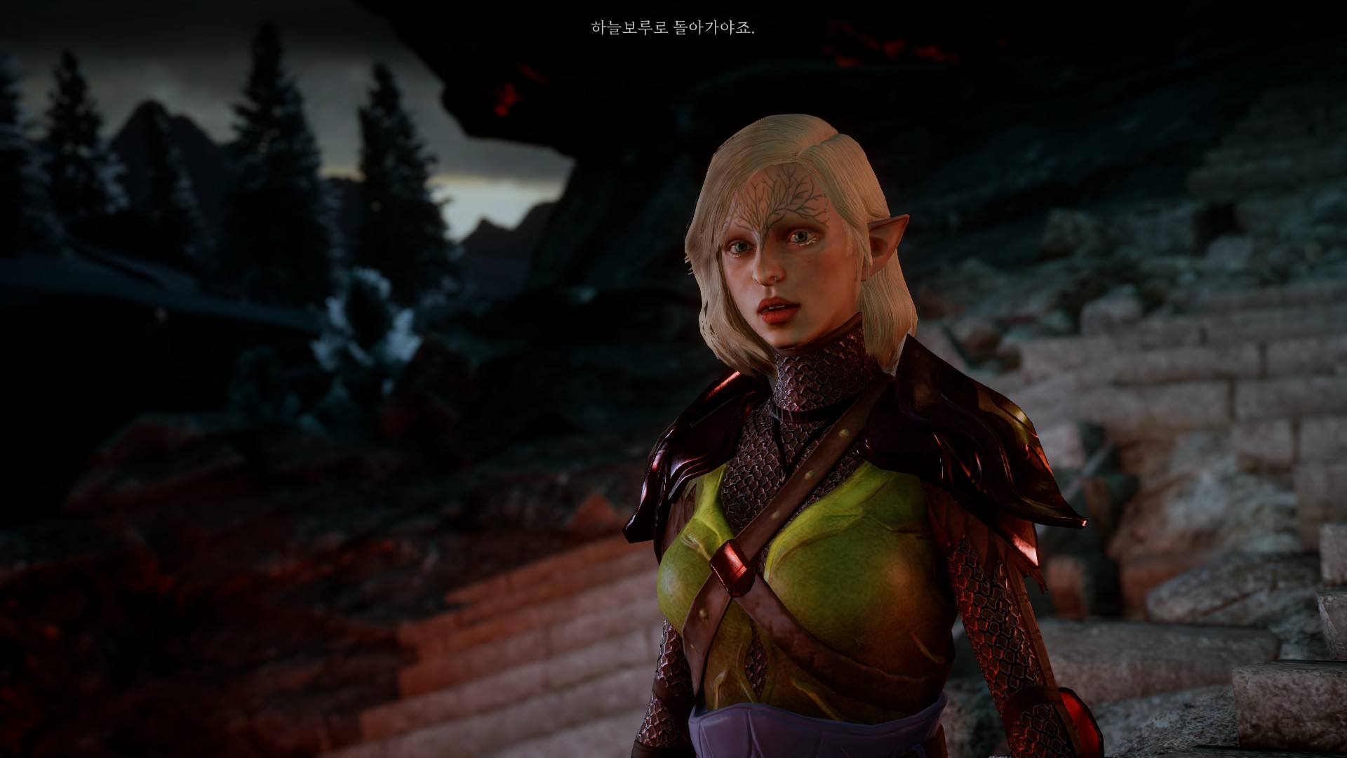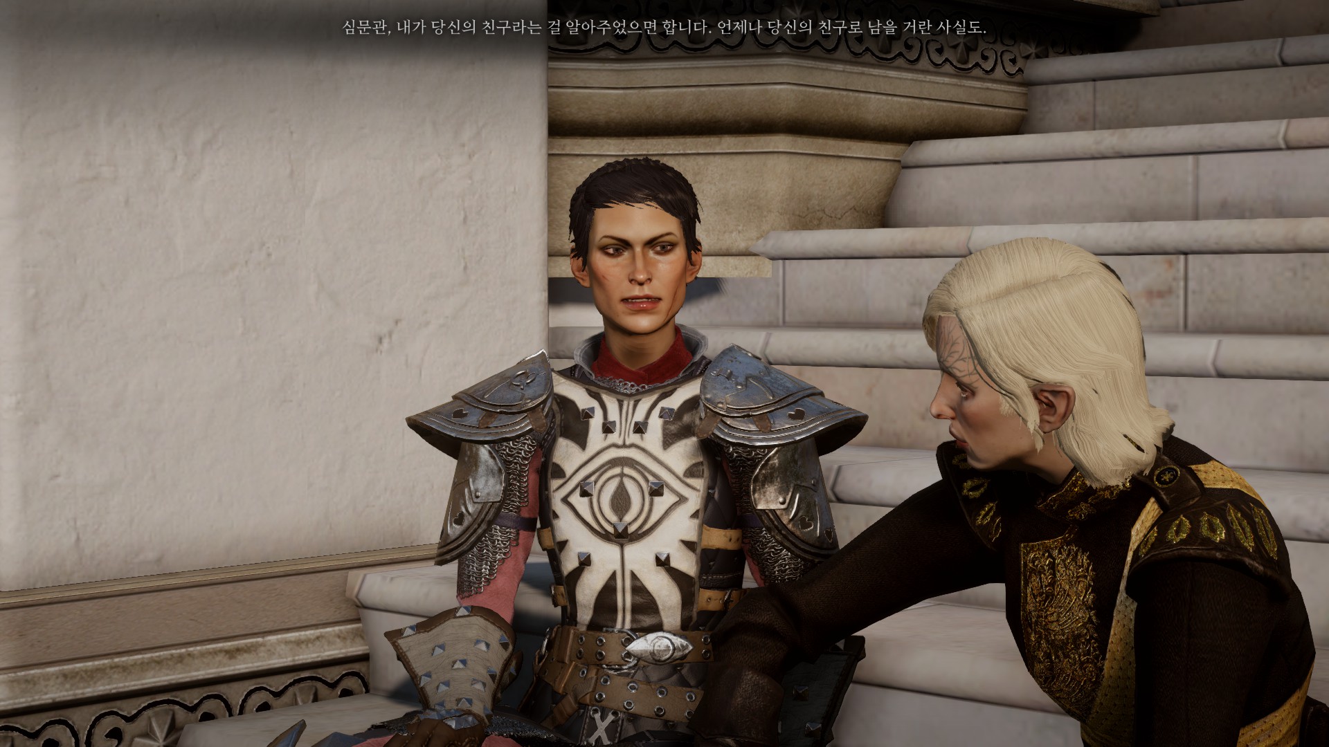 이런 말을 해줘서 더 특별한 일을 해낸 것 같은 기분이 들었다. 게임 내에서 솔라스의 위치와 인퀴지션 전체 스토리를 생각하면 엘프가 심문관인게 제일 자연스러운 것 같기도 하고.