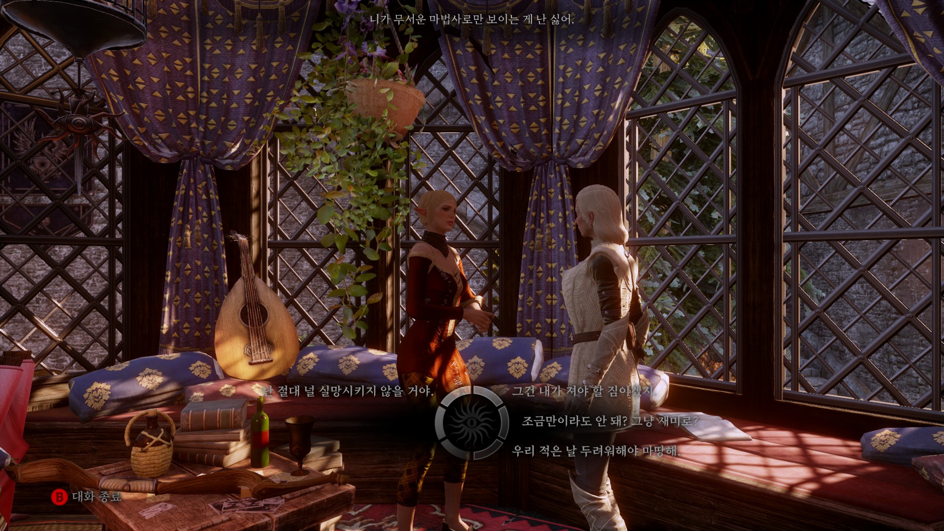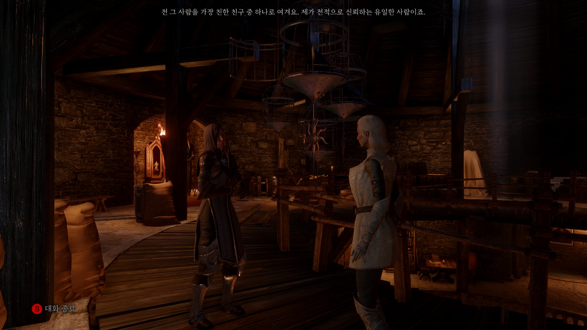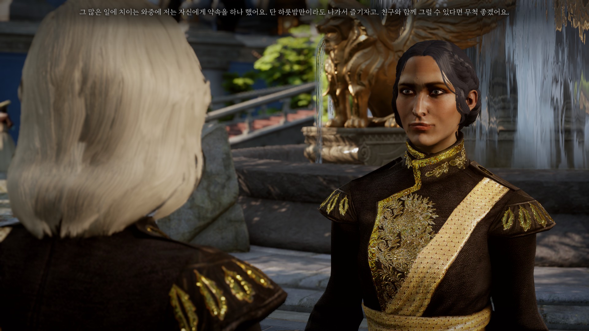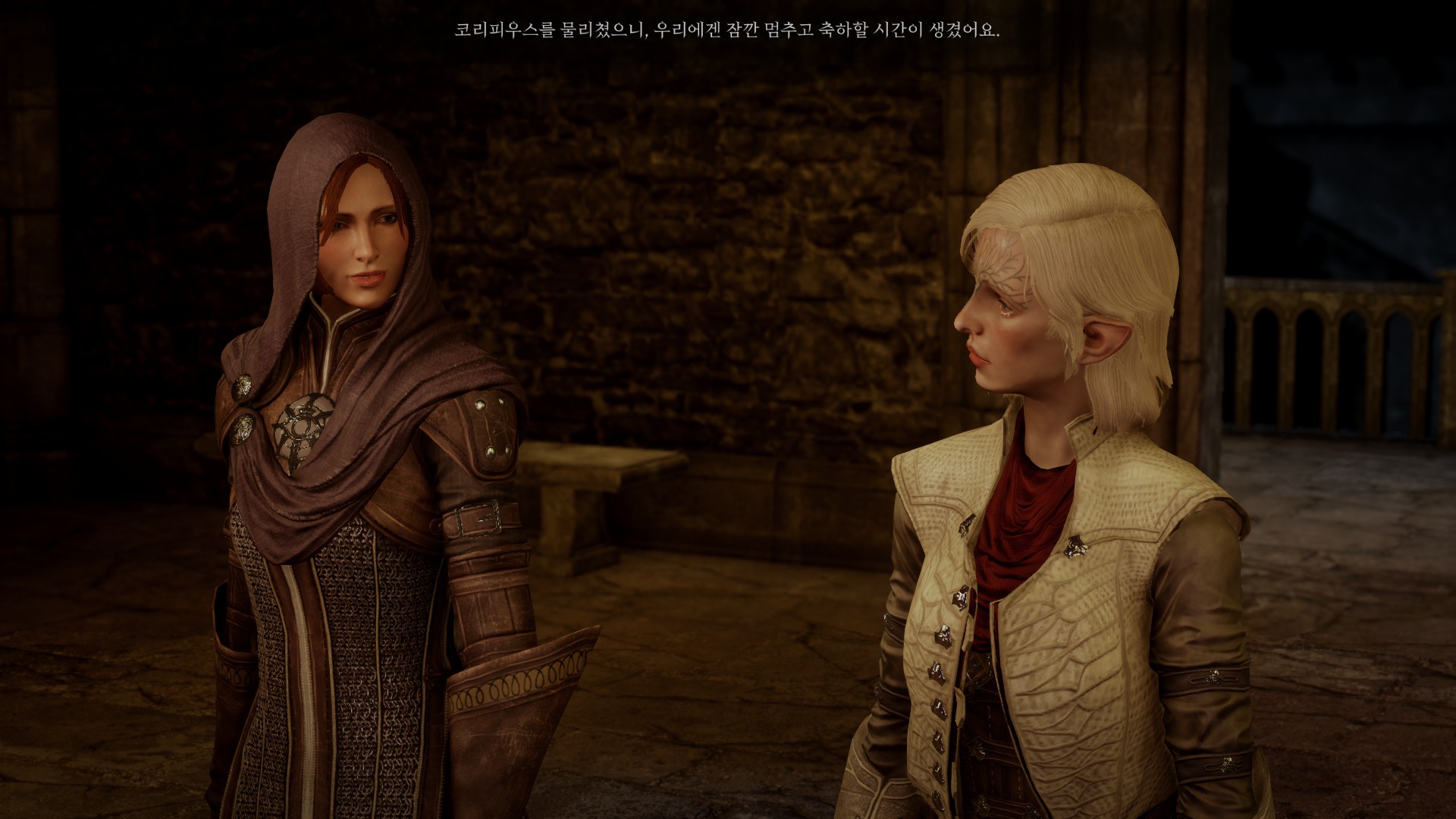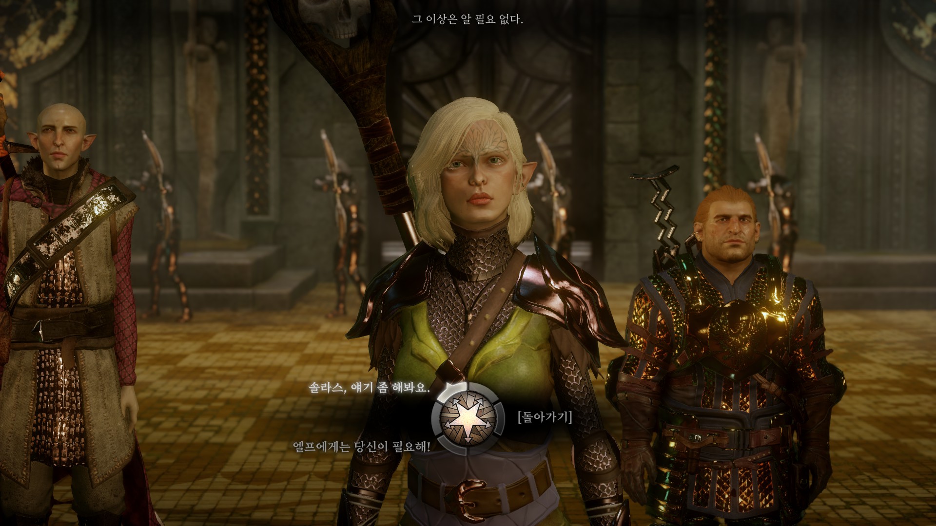 이런 말을 해줘서 더 특별한 일을 해낸 것 같은 기분이 들었다. 게임 내에서 솔라스의 위치와 인퀴지션 전체 스토리를 생각하면 엘프가 심문관인게 제일 자연스러운 것 같기도 하고.