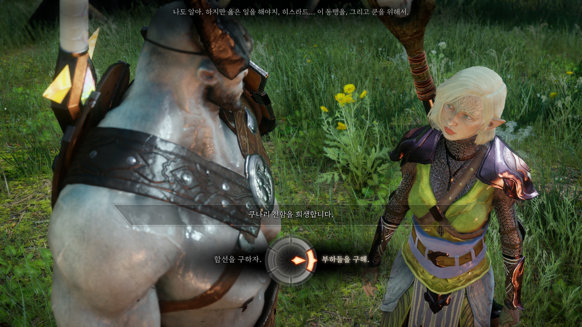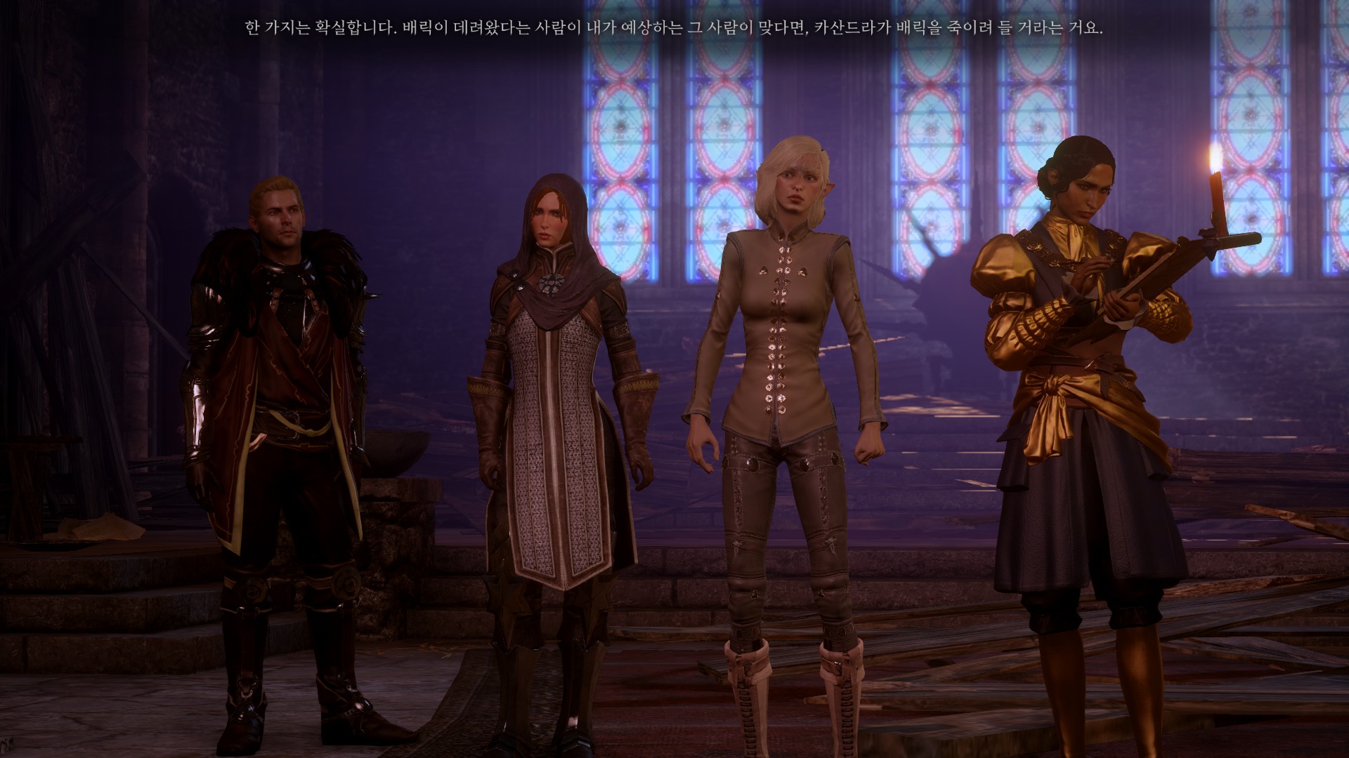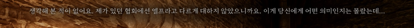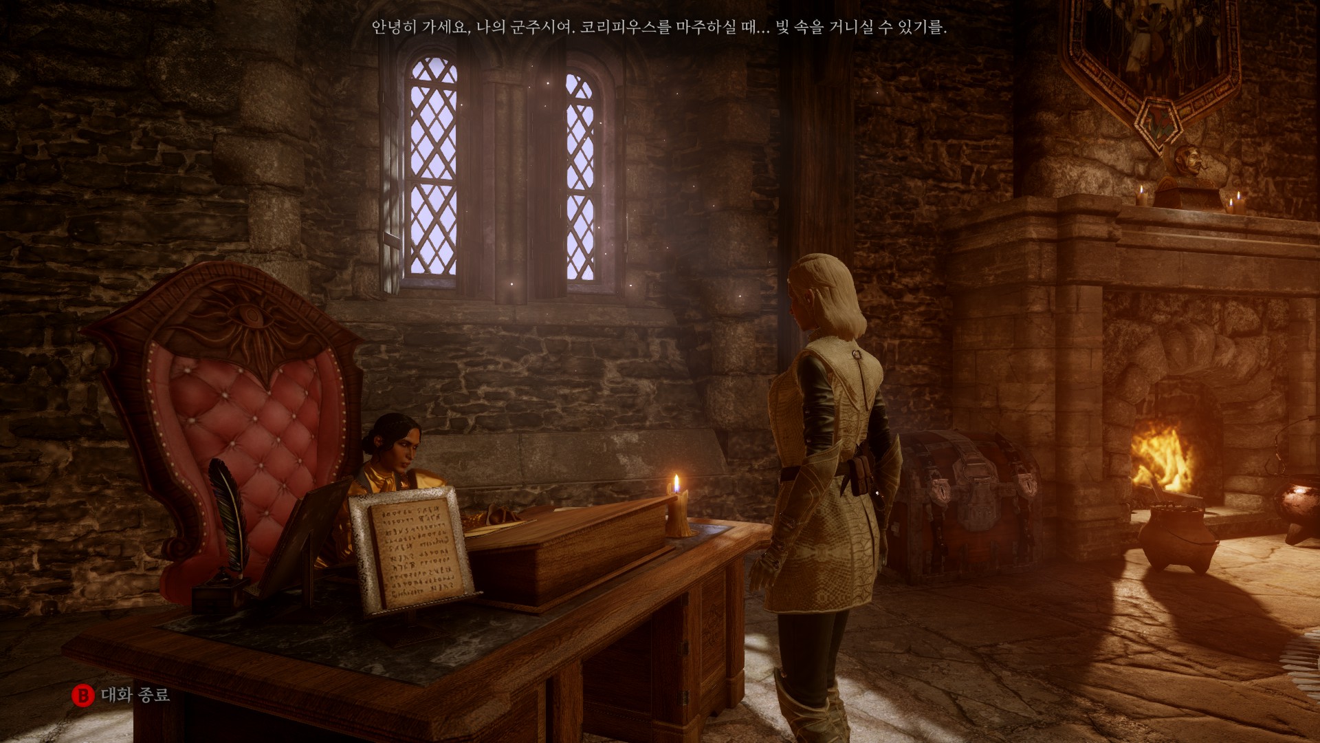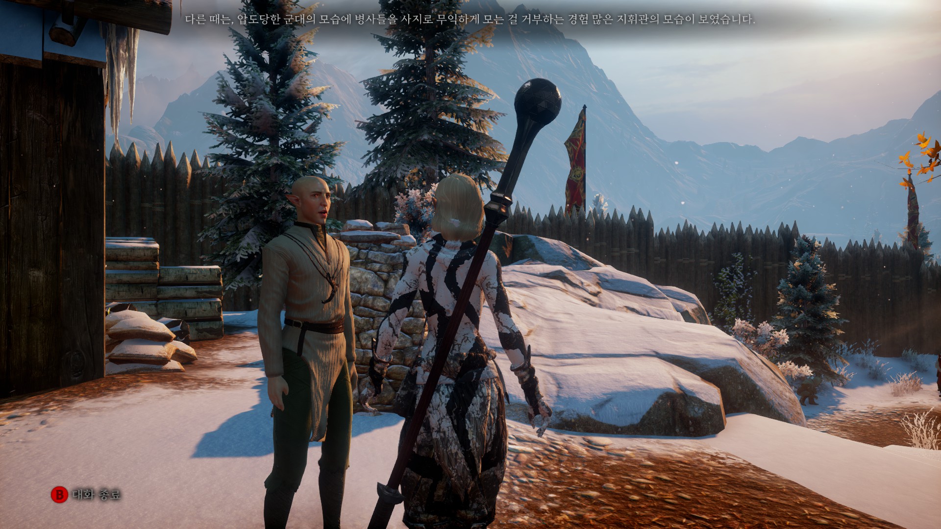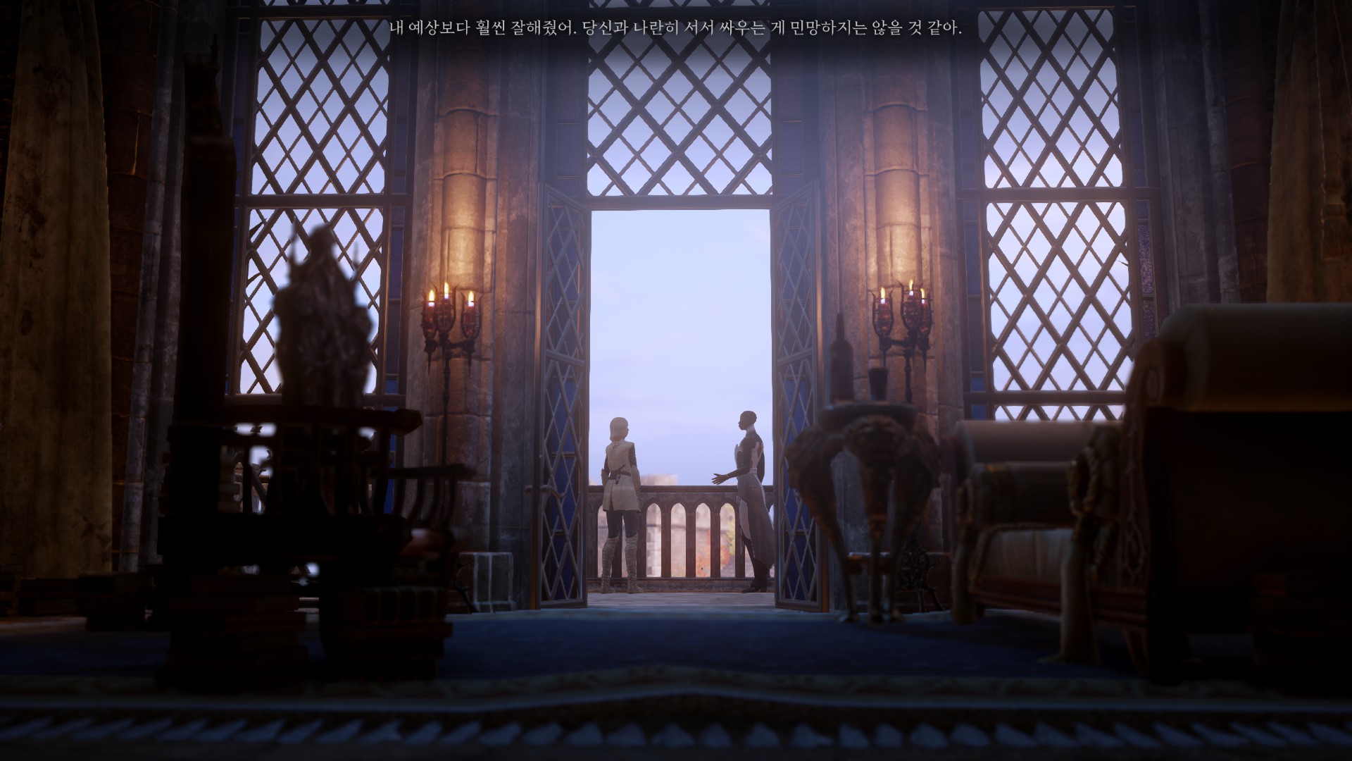 이런 말을 해줘서 더 특별한 일을 해낸 것 같은 기분이 들었다. 게임 내에서 솔라스의 위치와 인퀴지션 전체 스토리를 생각하면 엘프가 심문관인게 제일 자연스러운 것 같기도 하고.