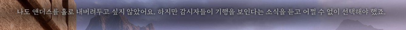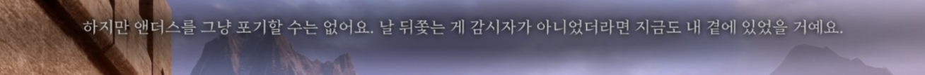 글로만 보면 탓하는 것 같은데 배릭 연기까지 들으면 착잡하고 씁쓸한 마음이 전해진다. 딴 놈들은 개막장 세계관에서 어떻게든 살아갈 것 같은데 앤더스는.....하 앤더스야........너 호크없이 어떻게 살고있어?ㅠㅠㅠㅠ
