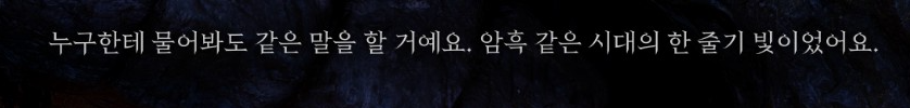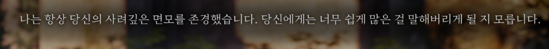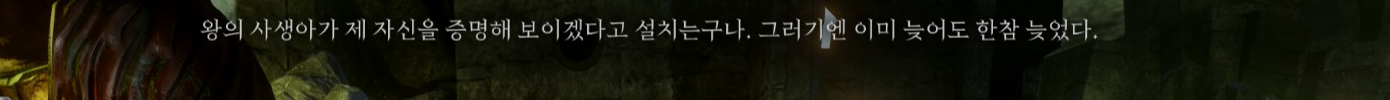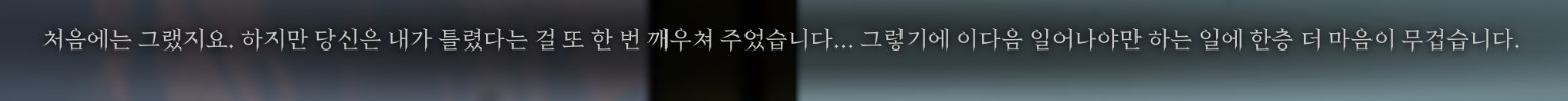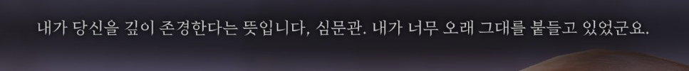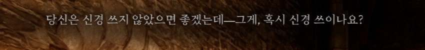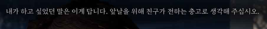 전혀 기쁘지 않구나. 이 뒤로 블랙월의 대사를 짜게 식은 눈으로 보거나 아예 대화 자체를 하지 않아서 할 말이 없다.
