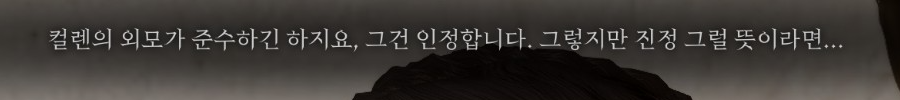 이 장면은 봐도봐도 웃기네. 컬렌보다 도리안 로맨스일 때 약간 날 선 것 같은 표현도 재밌음. 이런 소소한 차이때문에 다회차를 안 할 수 없다.