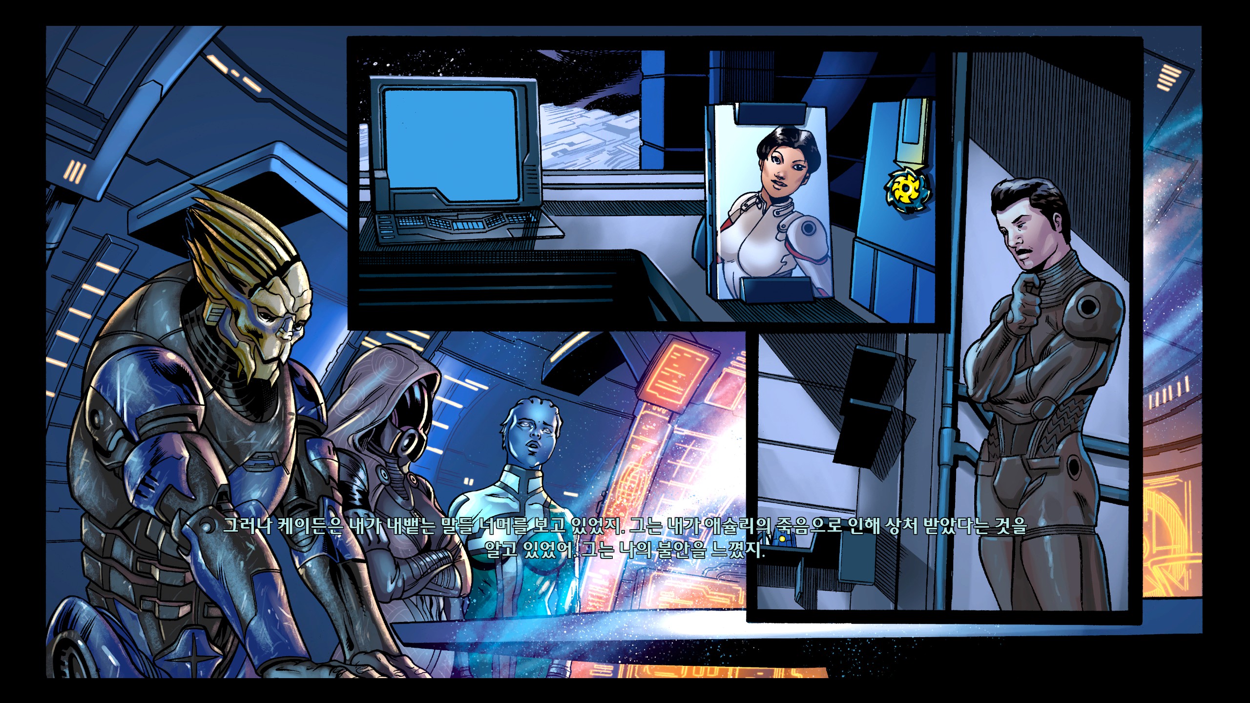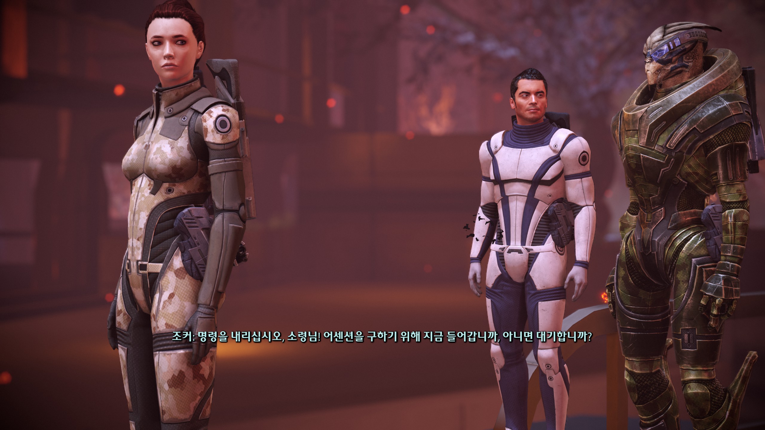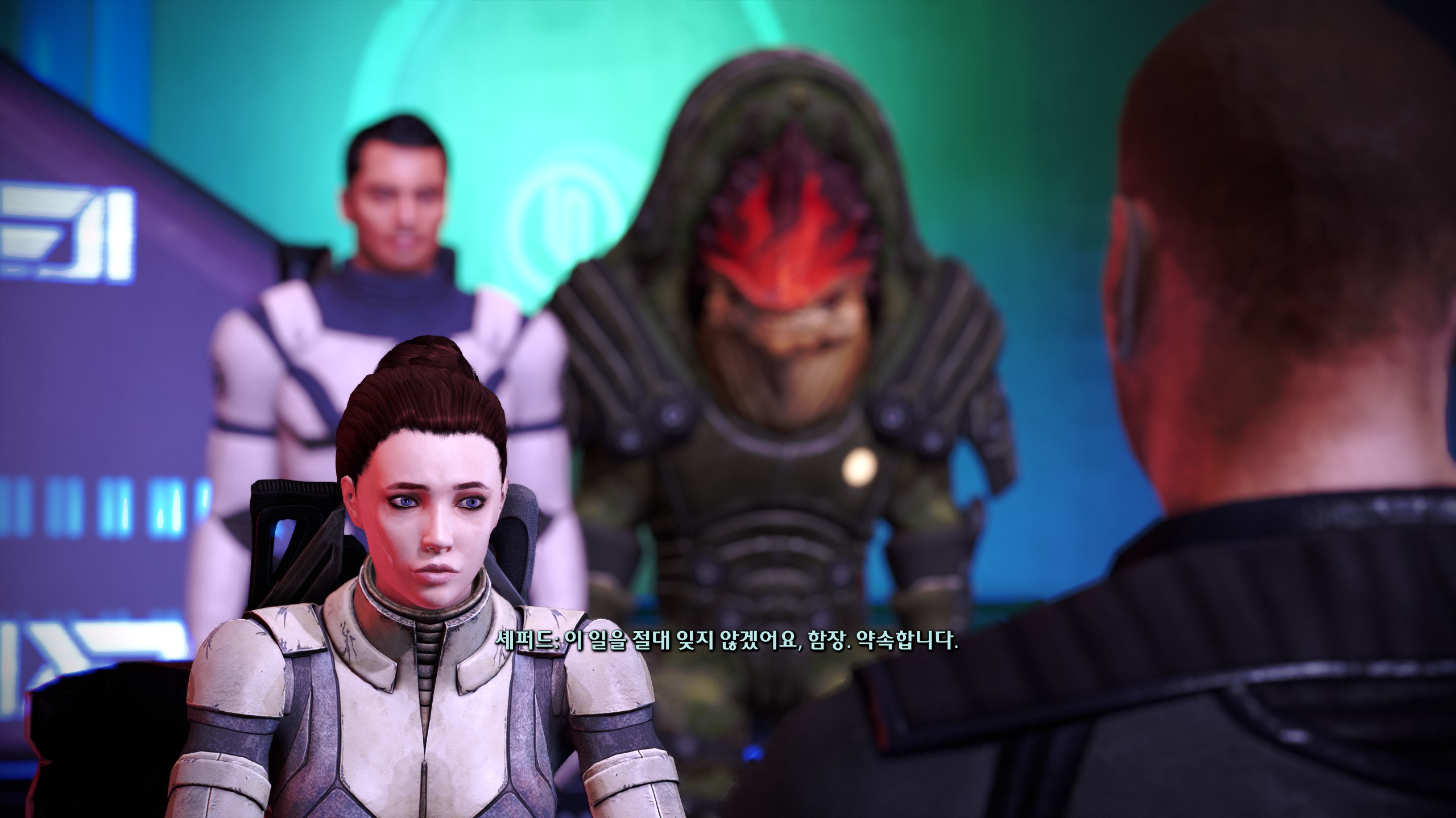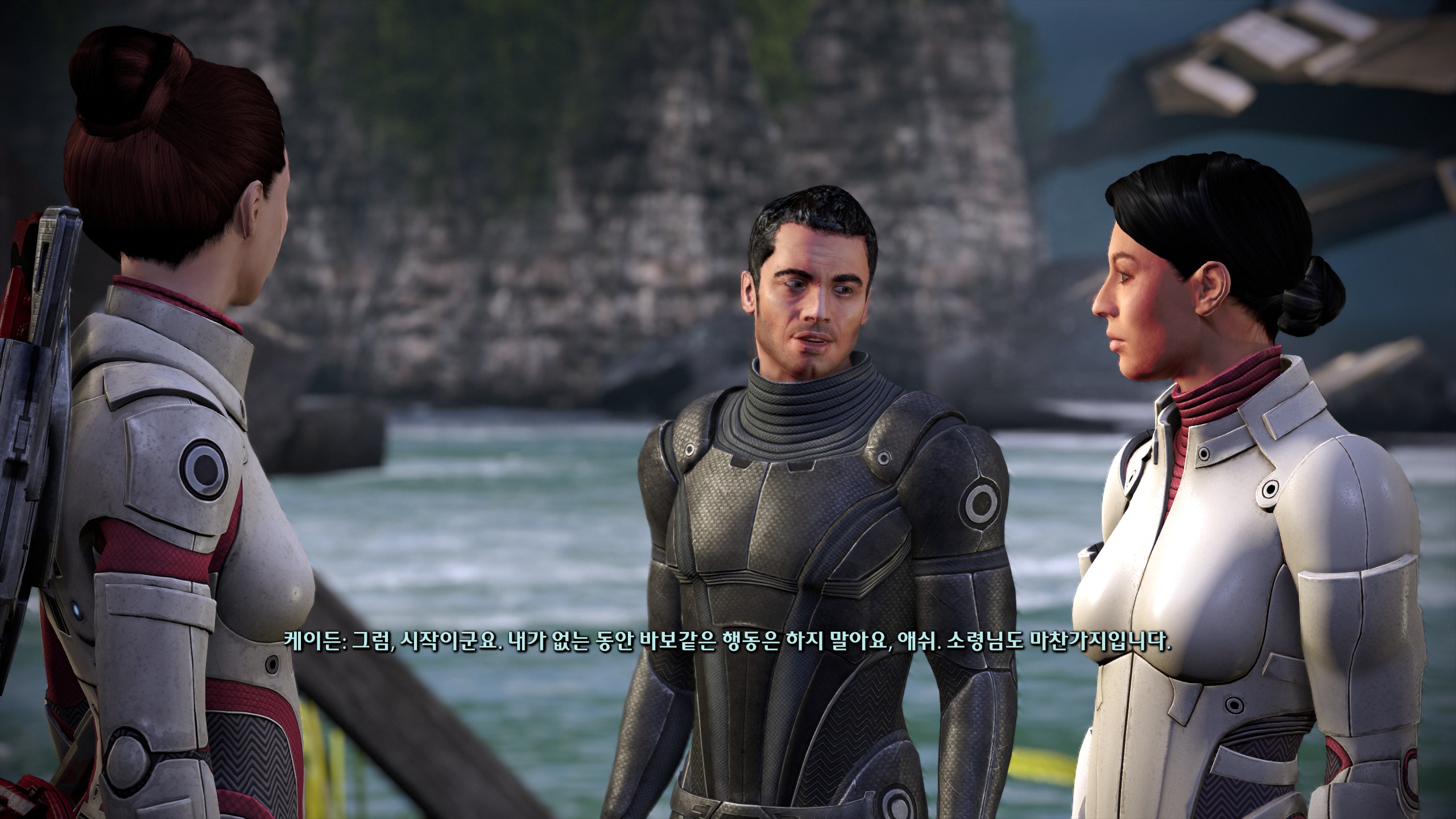 아무것도 없는 함장실에 케이든 사진부터 올려둔 순정이 이렇게 끝난다고? 미친놈들아...이래놓고 도전과제에 시리즈 전체에서 로맨스하기 있는 거 너무 열받아. 로맨스캐 줬다뺏기했으면서 이게 뭐하자는 겁니까ㅠ기왕 이렇게 된 김에 개러스로 갈아탈까했지만 아무리 생각해도 우리집 셰퍼드는 개러스를 친구로 보는 것 같고 3에서 둘 중 누굴 선택하든 이별 통보하는 장면도 보기싫고 추구미가 원앤온리라 이런 상황자체가 싫었다.