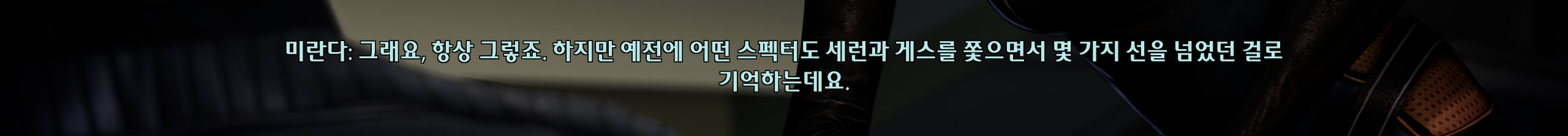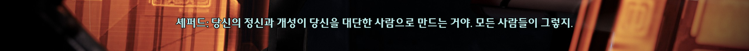 셰퍼드 커리어 미쳤다. 인간 최초 스펙터에 죽음 유경험자. 근데 테인도 만만치 않음. 사별남 애아빠 시한부 암살자 과잉기억증후군을 전부 때려박은 과다설정인데 이상하게 자연스레 받아들여진다. 외계인이라 그런가.