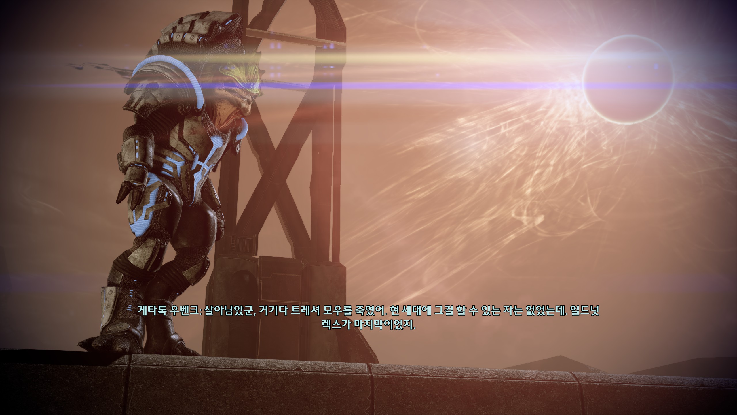 삭막한 우주생활에 촉촉함을 더해주는 비질. 내가 프로시안에 가졌던 위대하고 몽환적인 고대종족이라는 인상은 전부 비질한테서 나왔다. 고대 세런이 찾던 컨두잇이 무기가 아니라 시타델 직통 매스 릴레이라는 사실이 밝혀지면서 이미 시타델 침공에 성공한 세런을 뒤쫓아간다.