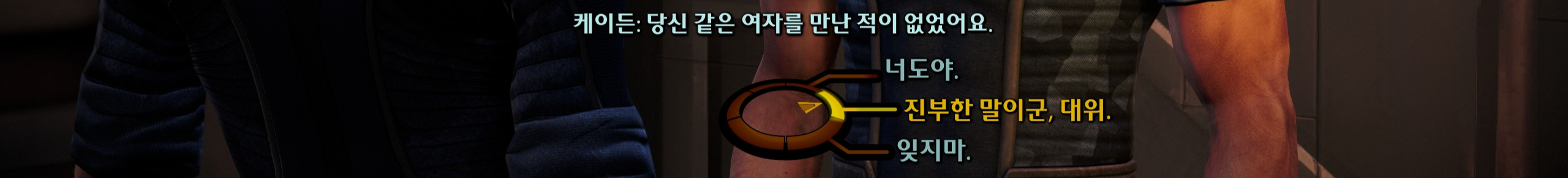 로맨스 이야기를 하자면 케이든 맹세코 취향 아니었다. 근데 드에 2에서 앤더스 픽인 걸 생각하면 걍 인정을 못했을 뿐 취향이었던게 아닐까. L2 설정듣고 살짝 혹했는데 관련 대화가 나오질 않아서 아쉬웠음. 두통외로 부작용이 있거나 좀 더 예민했으면 좋았을 뻔 했다고 생각함. 그리고 로맨스기류 대사도 딱히 끌리지 않았다. 전여친이랑 닮았다어쩐다 진심 어머니를 떠올리게 만드는 따스함과 동급으로 싫어하는 류의 감정선. 부하면서 은근슬쩍 이름부르는 수작까지 부려서 별로였음. 그래도 로맨스 안 하고 가기엔 심심하니까 2에서 갈아탈 생각이었는데 어쩌다보니 그렇게 됐다.
