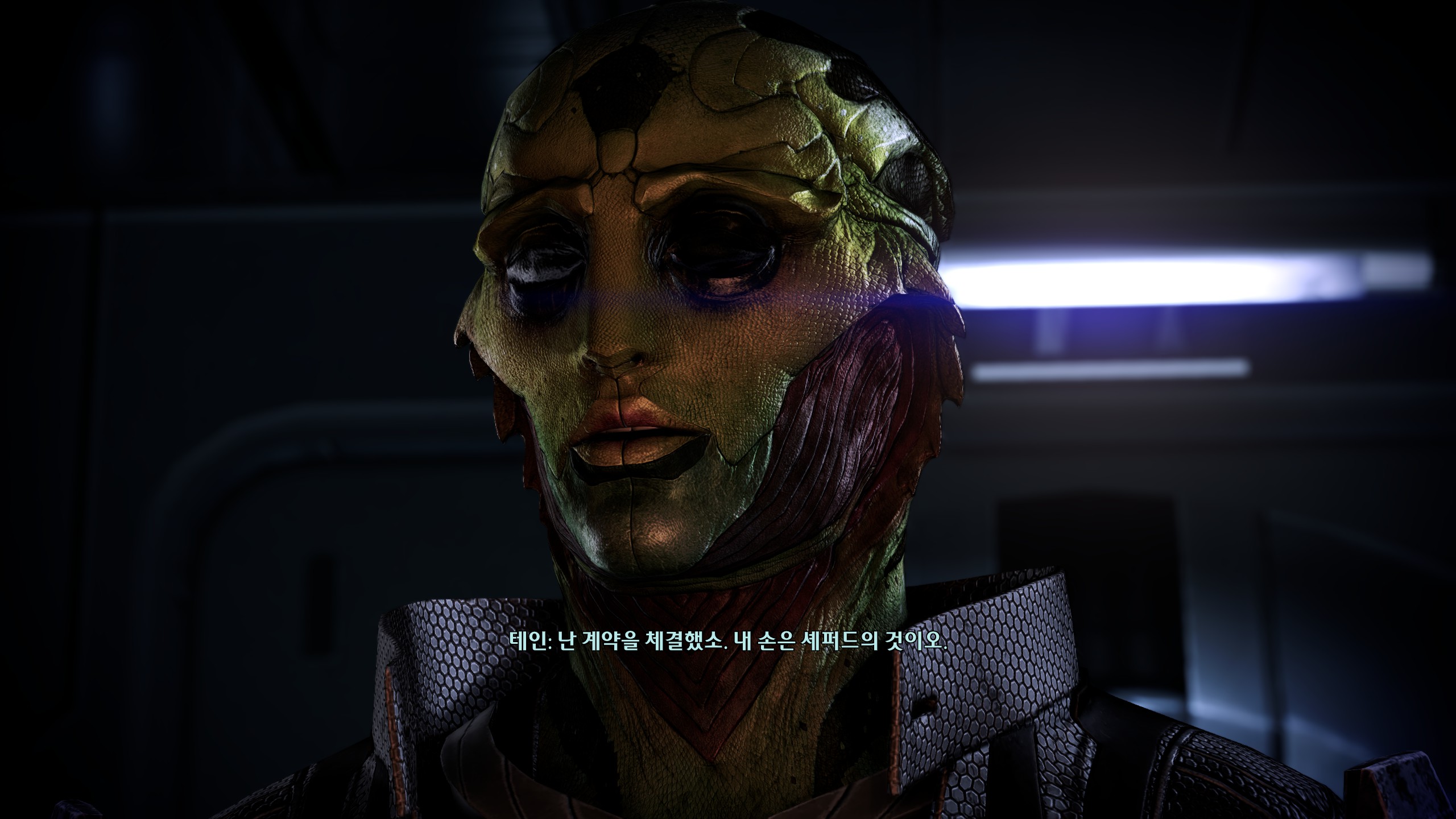 그동안 완고하더니 설득이 가능했다. 그래서 스스로에게 총을 쏴버릴 땐 악역이었지만 시원하지 않았다. 멀쩡했더라도 셰퍼드랑 척을 지고 살았을 거고 인간에게 해가 됐으면 됐지 득은 안 될 투리안이지만 이 놈의 삶을 한 번 생각해보게 만드는 끝이었다. 그리고 투리안 관상을 볼 수 있게 된 지금은 세런이 정말 악당같이 생겼음을 깨달아요. 투리안치고도 꽤 나쁜 놈처럼 생김.