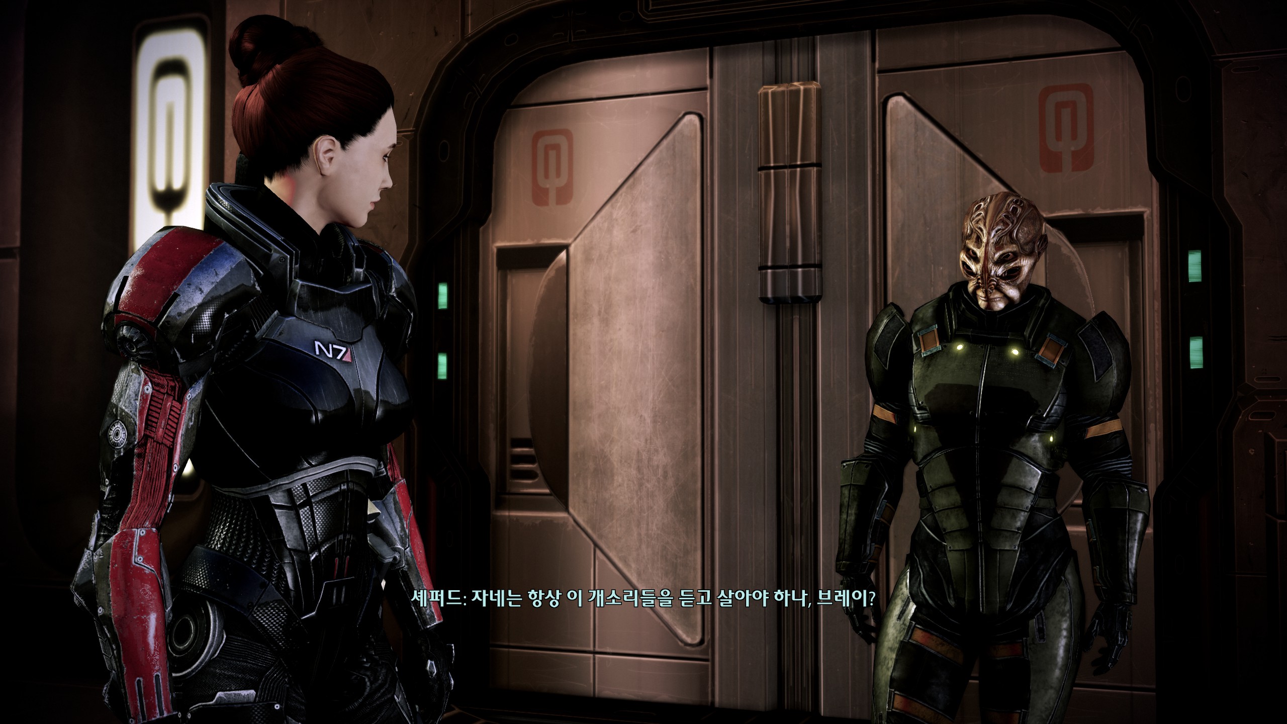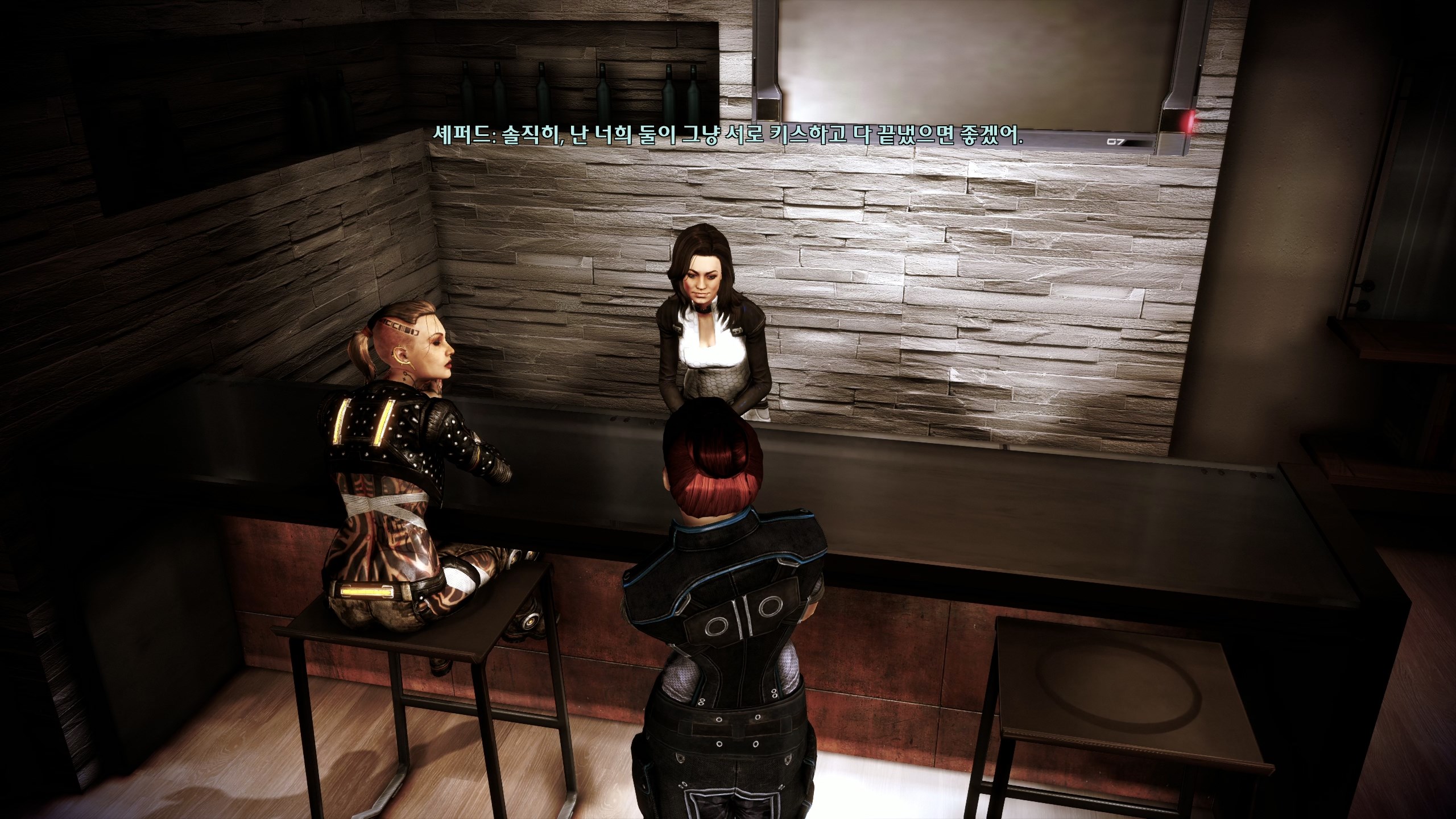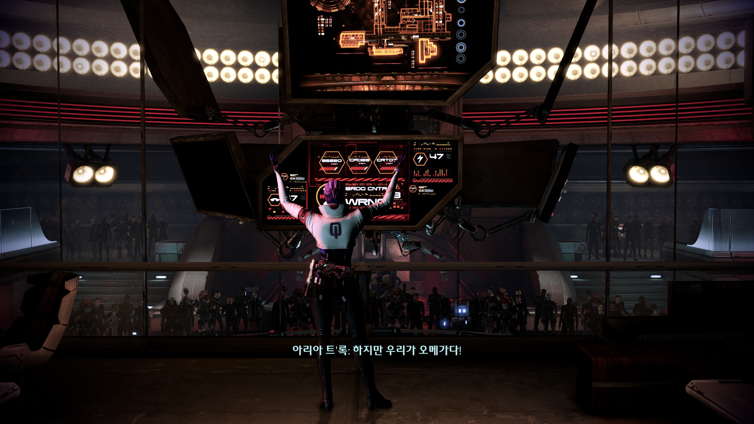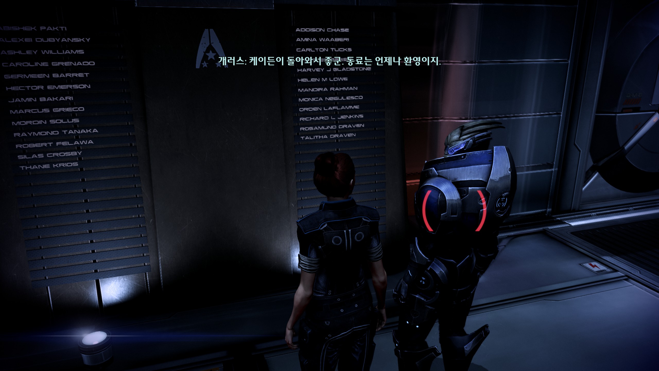이후 마지막까진 뒤돌아보지 않고 쭉 달려서 스샷도 없다. 모든 이벤트를 싹싹 긁어먹어서 코르테즈도 미란다도 무사히 살렸답니다. 당연한 전개인 줄 알았는데 나중에 보니까 신경 안 쓰면 죽는 분기가 있어서 놀랐다. 막전투전에 셰퍼드 과로 막으려고 퀵 드링크라며 함장실 찾아온 케이든이 너무 귀여웠다. 사실 거짓말이었다고 붙잡는 것도 귀여워. 내조 너무 잘 함ㅋㅋㅋ