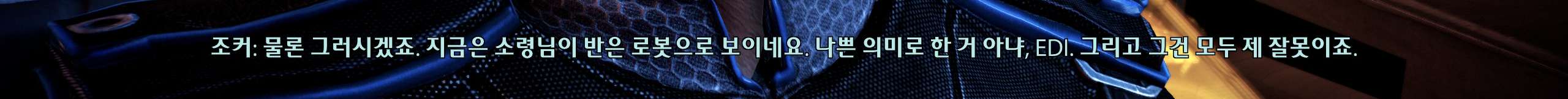 EDI가 플블캐로 들어온다는 거 좋긴하지만 그래도 실체없는 인공지능일 때가 좋았다. 형체가 없어서 종족을 뛰어넘은ㅋㅋㅋㅋㅋ유기체와 무기체간의 상호작용이 더 눈에 띄었던 건데 3의 이디는 너무 무언가의 욕망이 투영된 껍데기라 별로...
