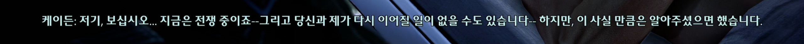 케이든 로맨스 최고봉은 여기라고 생각해요. 친구든 상사로든 로맨스 상대로든 심지어 로맨스가 여기서 끝나더라도 케이든은 셰퍼드가 존재하는 삶에 만족할 거라는 점. 여기 진짜 연기도 모션도 너무너무 좋거든요. 한동안 셰퍼드한테 날 세워 이야기했는데 무장해제하고 읊조리는 목소리가 보들보들하니 좋다. 케이든 거친 편이라 좋아하는 음색은 아니었는데 이땐 그 목소리 때문에 대사가 산다. 단어 사이마다 뜸을 주는 구간이랑 셰퍼드말고 천장보면서 말하는 것이 생각정리하려고 노력하는 것 같은 감정의 복잡함이 전해짐. 결국 본인도 아는 거라곤 셰퍼드라는 존재가 좋다라는 것 밖에 없을 정도로 셰퍼드만 생각하고 사랑하고ㅠㅠㅠㅠ케이든 3부턴 남셰퍼드 로맨스도 풀린다는데 셰퍼드랑 떨어져지내고 죽을 고비 넘겨보니까 뭔들 좋다라는 걸 깨달은게 분명하다. 케이든한테 셰퍼드는 대체 뭐임? 진짜 뭐임? 존경, 사랑, 동경, 원망, 후회 등등등이 합쳐진 단어를 세상은 뭐라고 정의했죠?