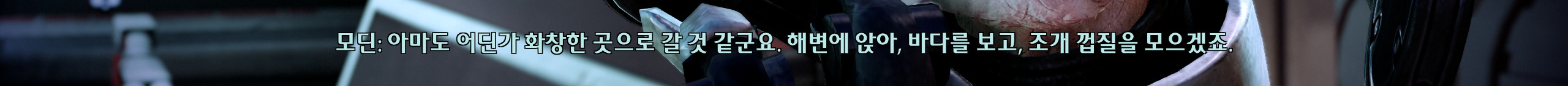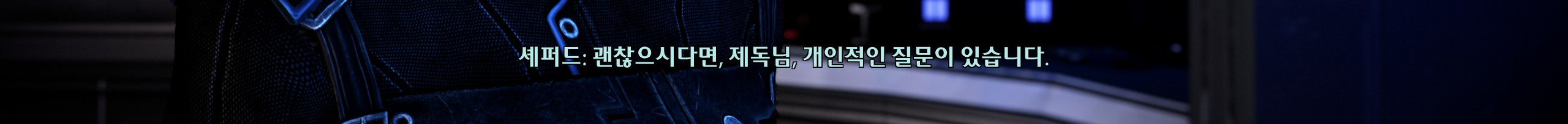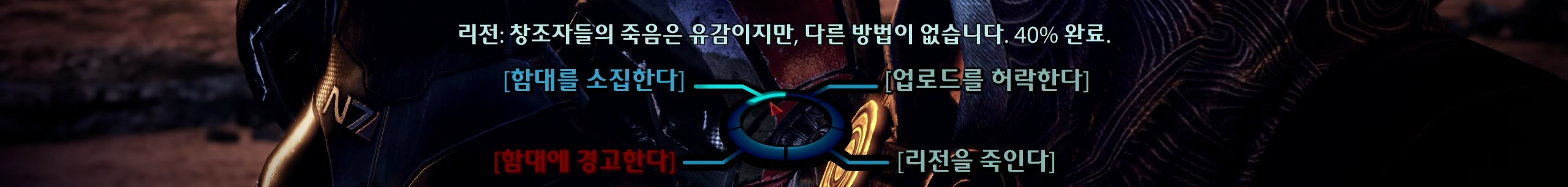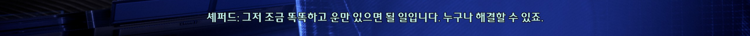 사람 북돋우는데에 일가견이 있으시네요 제독님. 종족과 집단에 관계없이 신임을 얻은 셰퍼드덕에 전 우주가 하나로 뭉치잖아. 그게 셰퍼드가 주인공이 될 수 있는 이유잖아요ㅠ주인공 뽕이 찬다.