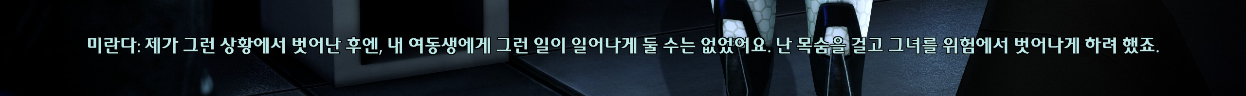 미란다의 끊임없는 자기성찰이 미란다를 아버지와 다른 사람으로 만든다고 생각한다. 플레이어인 나도 그렇고ㅋㅋ셰퍼드도 미란다가 셰퍼드 성격 개조하려고 했던 거에 대해 별 생각 없이 살았는데 시간이 꽤 흐른 뒤에도 본인이 마음에 걸리니까 사과하고 넘어가는 모습이 미란다가 결국 좋은 사람이라는 걸 보여주는 것만 같다.