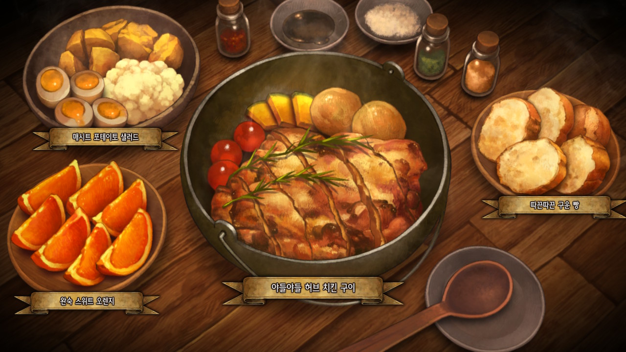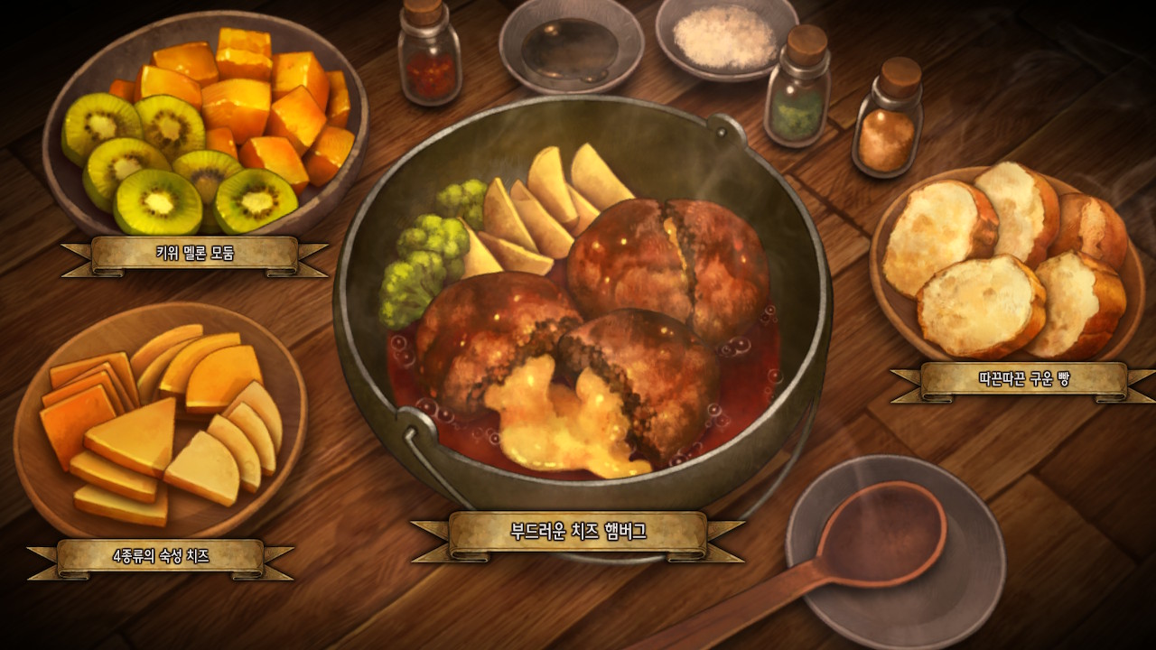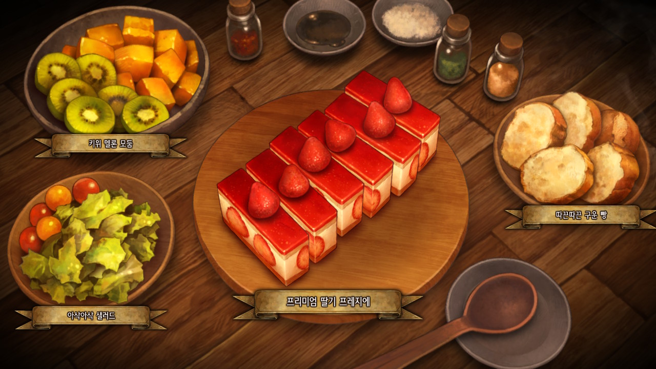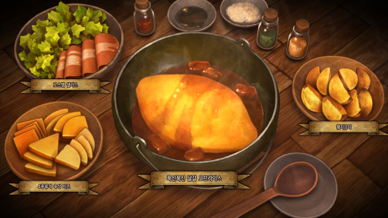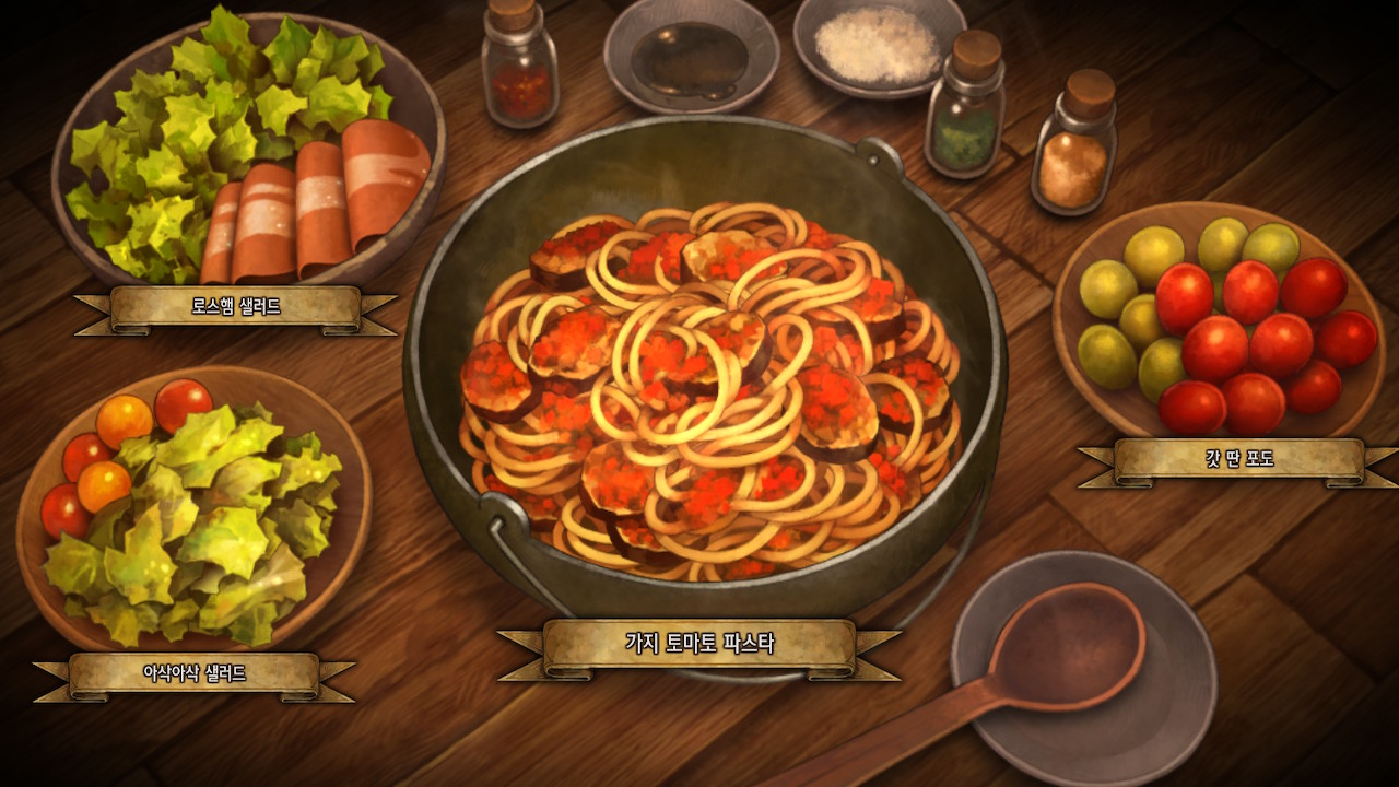 다시 봐도 아트 기깔난다. 요리도 탐스럽고 탱글탱글해서 친밀도 올리다가 배고파짐. 나도 한 입만.