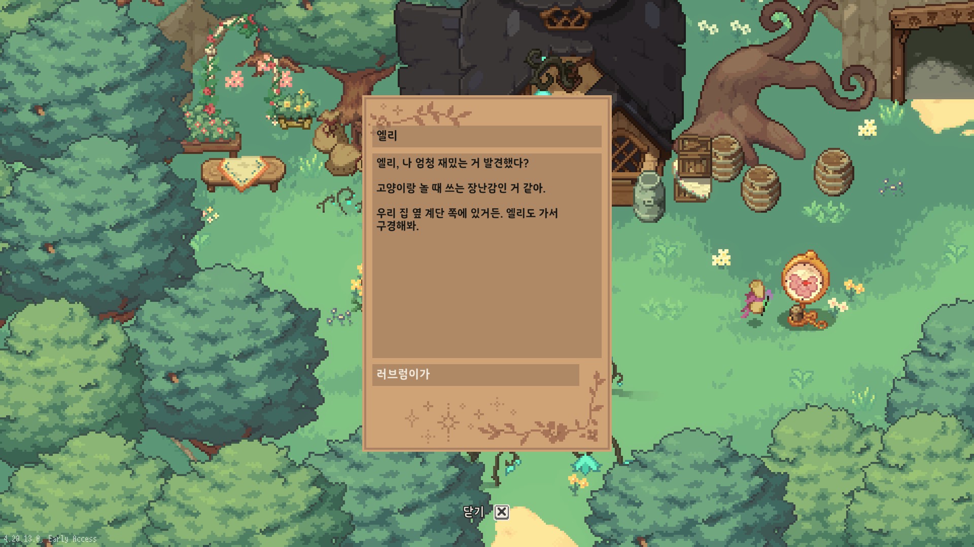 견습 마녀 엘리가 호기심을 못이겨 인간물약제조기가 된 이야기 얼리억세스로 5시간 분량이라던데 나는 뻘짓 많이 해서 8시간했음 잊고 사니까 얼리억세스가 나오긴 하네. 봄에도 집합공부 여