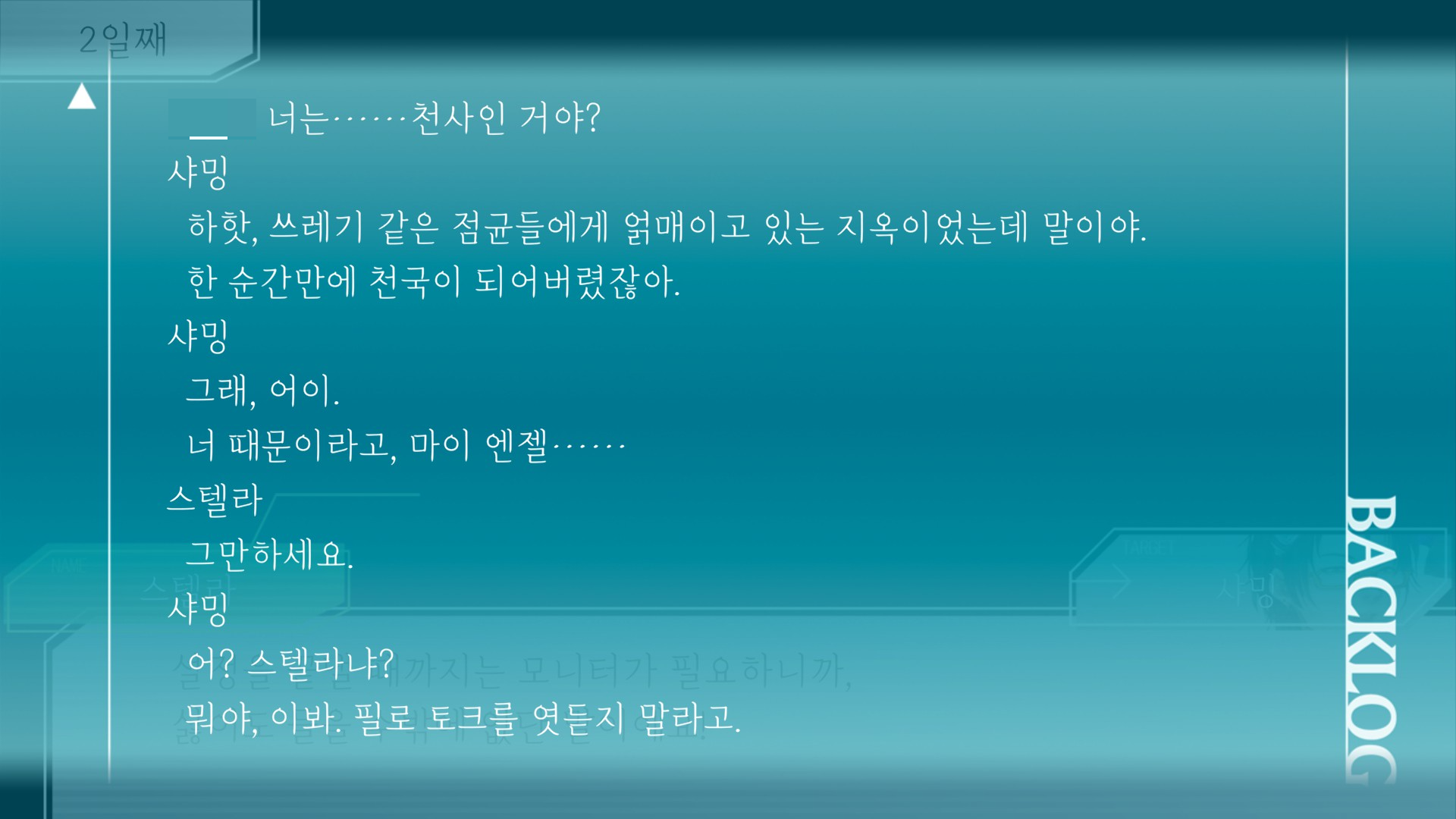 나 스텔라도 좋아해 이런 천사여캐 조아 스텔라때문에 더 남캐플해보고 싶었음. 2회차 돌면서 무슨 조건이 채워진건지는 모르는데 이런 멘트도 들었다.