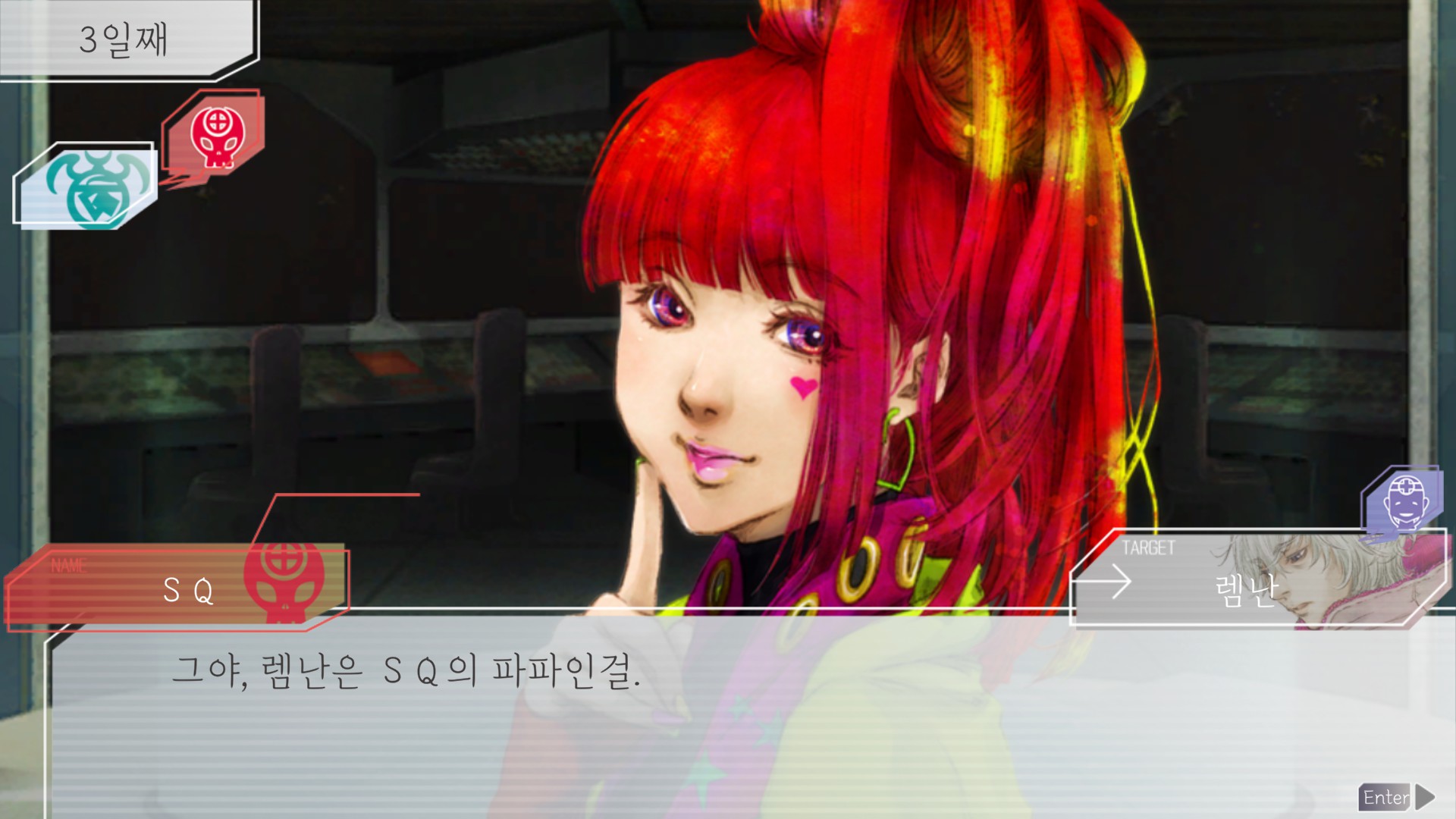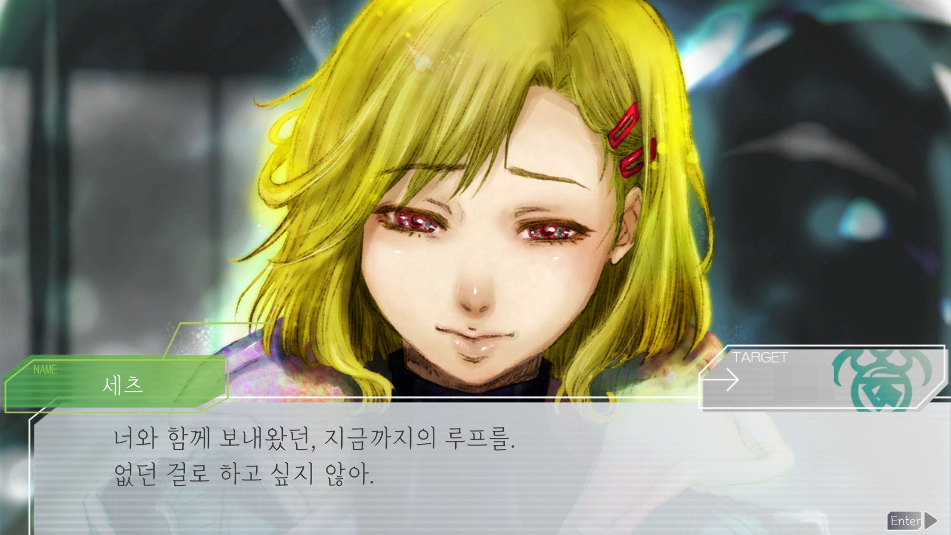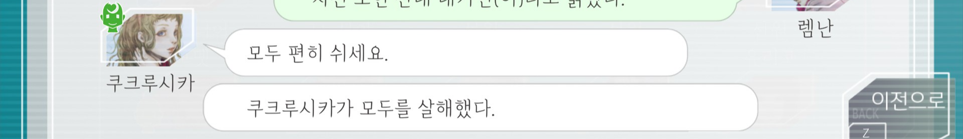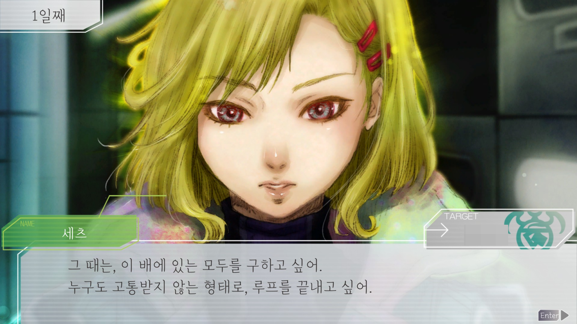 지금 보니까 저 모두에 세츠 자신이 포함되지 않았다는게 슬프네요. 루프 돌수록 캐릭터들의 다양한 이벤트를 보고 의외의 일면도 마주하고 비밀도 파헤치고 정이 들수밖에 없었기 때문에 세츠의 말은 군인으로서의 책임감이 아니라 동료으로서의 각오로 들렸다.