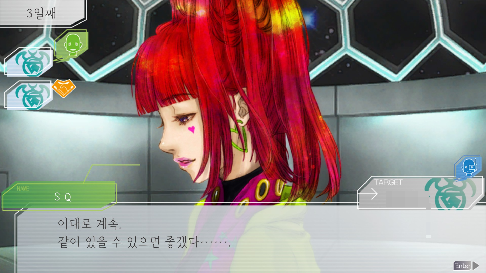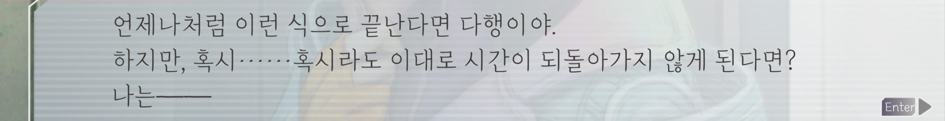세츠는 위에서처럼 모두를 구하고 싶다고 했고 그래서 루프가 끝나길 바라면서도 갑작스럽게 고정될 루프를 두려워한다고도 느낌. 그 모두에서 플레이어가 한 50% 비중을 차지하는 것 같지만ㅋㅋㅋㅋ고독하게 우주를 방황한다는 말에서 슬퍼하는게 느껴져서 세츠야 세ㅡㅊ야ㅠㅠㅠㅠ