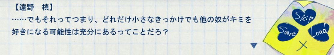 그래도 차라리 트루나 메리배드보단 이게 낫다고 본다. 문제를 마키 혼자 덮어버리는 것도 아니고 둘 다 비뚤어지는 것도 아니니까. 눈을 피한다는 건 문제가 있다는 걸 안다는 뜻이니 세상이 넓어지고 많은 것을 겪으면 건강하게 해결할 가능성이 조금이라도 있는 엔딩이라고 생각한다. 물론 마키는 병원에 가야겠고 여주의 신중한 행동이 중요할 난이도 있는 루트지만. 원래 해피엔딩엔 고난이 필요해.