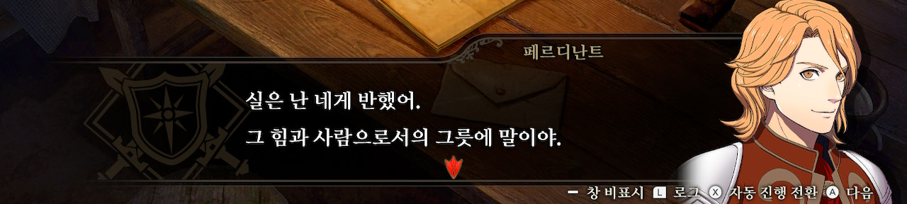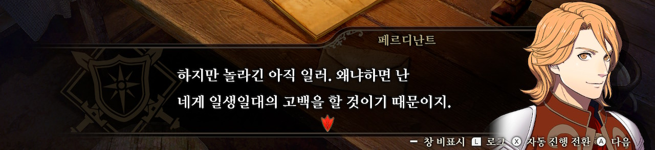 아쉬운 점이 있다면 온전히 페르디난트가 노력한 결과가 아니라는 점ㅠ이번에도 사전 준비가 모두 끝나고 페르디난트가 원하는 때에 일이 진행된게 아니었다. 에델이 시간 준다길래래 오ㅎ 드디어 하나?싶었지만ㅋㅋㅋ외부 압박 요소가 너무 많아서 이미 막이 오른 연극 속 처형인의 역할이라도 가져간 느낌이었음. 분명 더 나은 길이 있었을지도 모르지만 결국 제 손으로 혈육을 죽인다는 점에서 클로드와 샤하드, 디미트리와 루퍼스의 관계성이 제국에선 페르디난트와 에기르공으로 나타났다고 느낌.