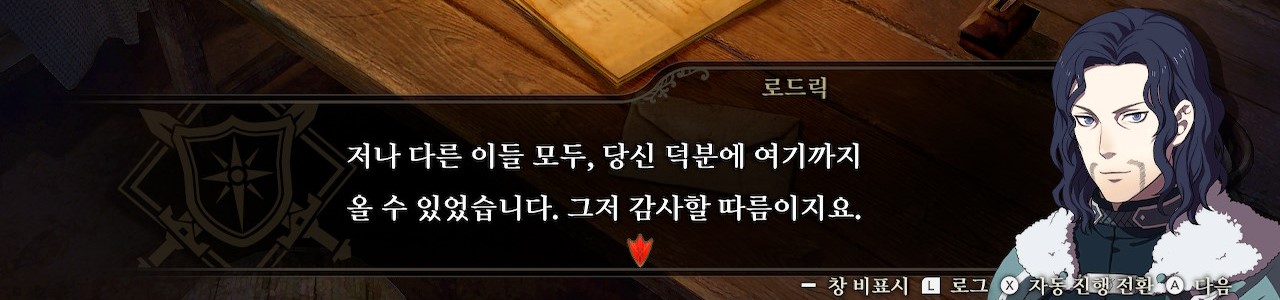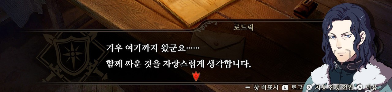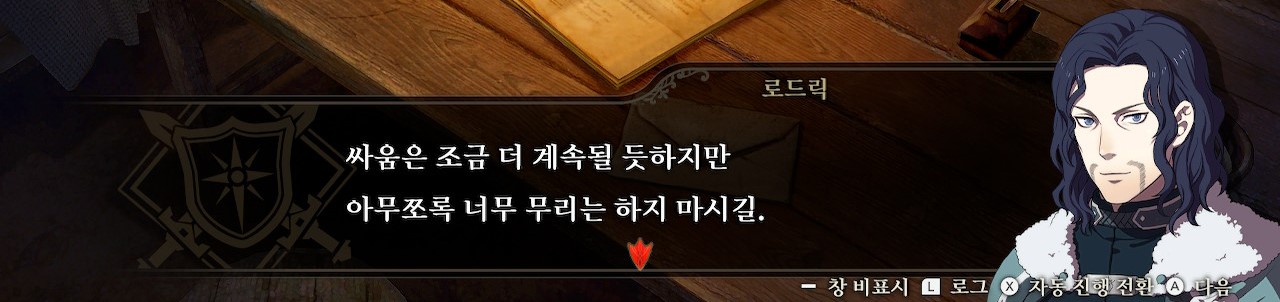 로드릭 지원회화에 제대로 홀려서 이번엔 로드릭 엔딩을 볼 생각이었음.