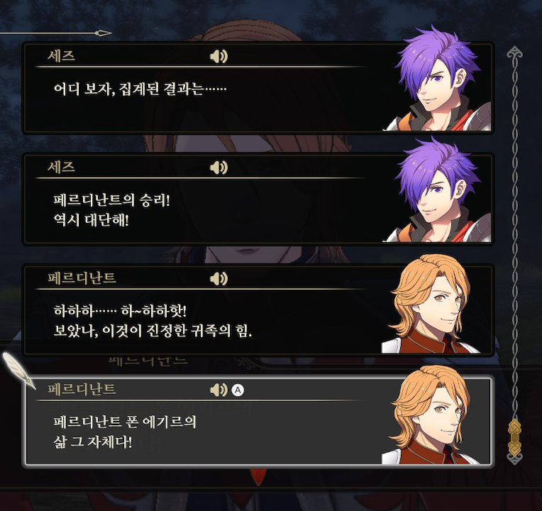 대결한다길래 혹시 결과에 따라 스크립트 달라지나 싶어서 계속 페르디난트만 조작했더니 뿌-듯