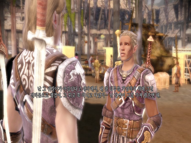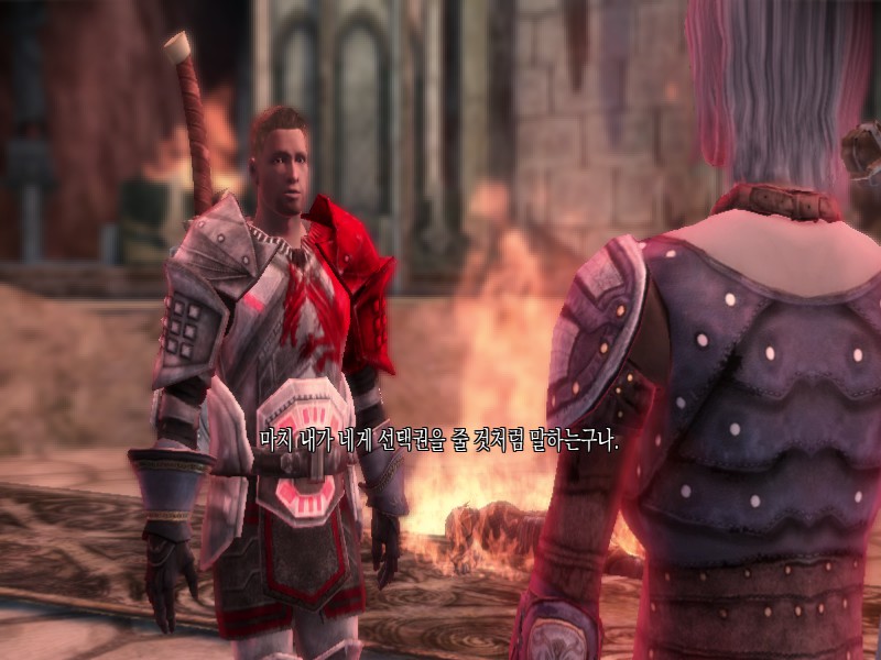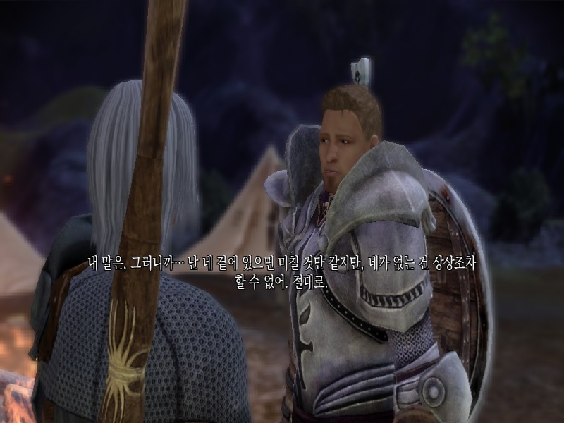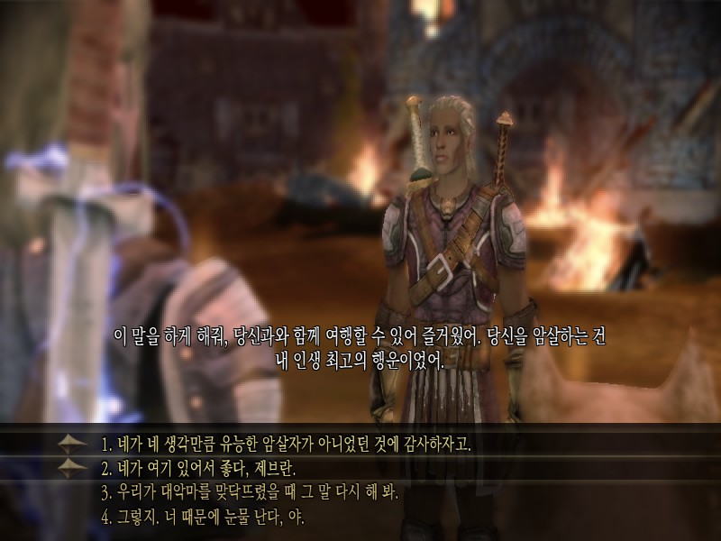 어차피 내가 죽을 생각이었으니까 거절했는데 모리건이 화내면서 가버릴 땐 너무너무 섭섭했음. 친구사이에 앞길을 막을 순 없지만 우리가 고작 그정도밖에 아닌 사이였던거니?ㅠ 그래도 의식 치루고 막전투에서 데리고 가지 않았을 때 대사가 정말 감동이었다.