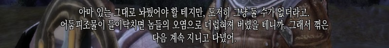 원랜 이번에야말로 워든 희생엔딩으로 마무리하려고 했는데 이거 보니까 제브란한테 워든 빼앗아가는 게 가혹하다고 느껴졌다. 로드해서 워든이 회색 감시자로 남는 엔딩봤는데 제브란이 감시자가 되진 않았지만 훈련 도와줬다는 무난하고 행복한 엔딩이었다.